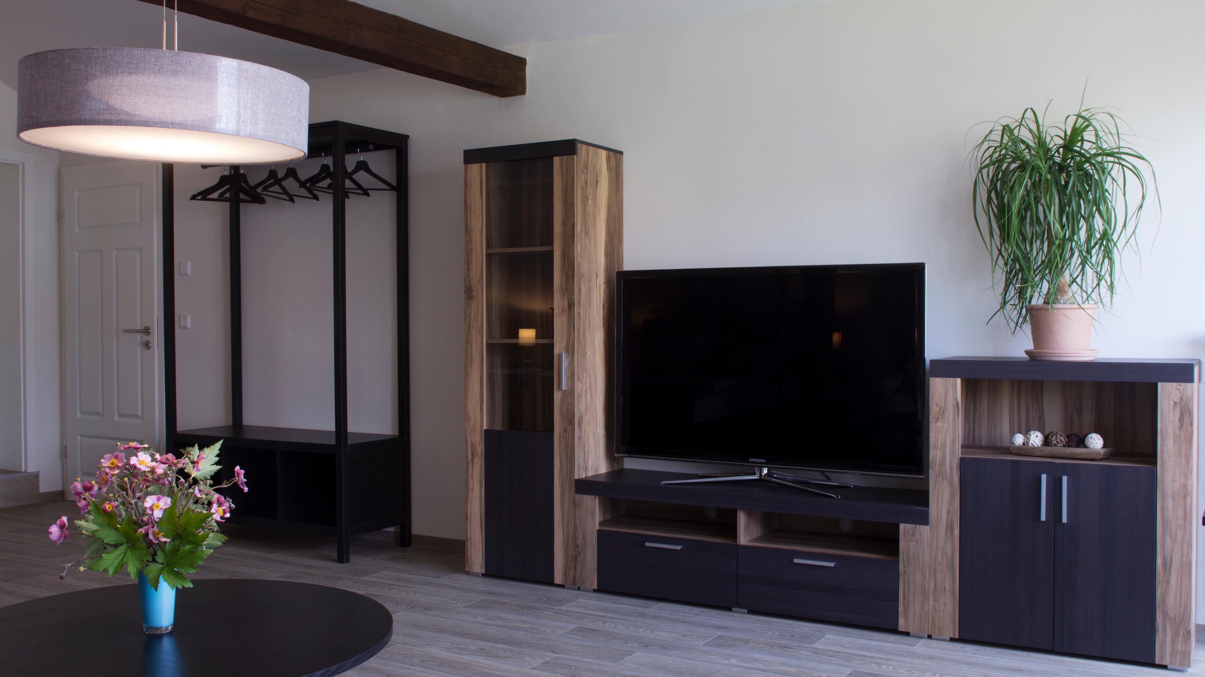 Ein Hund bis 10 kg ist nach Anfrage und gegen Aufpreis von 8 ,- € pro Nacht erlaubt.Die Ferienwohnung verfügt über ein Doppelbett, ein Schlafsofa, eine voll ausgestattete moderne Gemeinschaftsküche mit Balkon und ein modernes Gemeinschaftsbad.