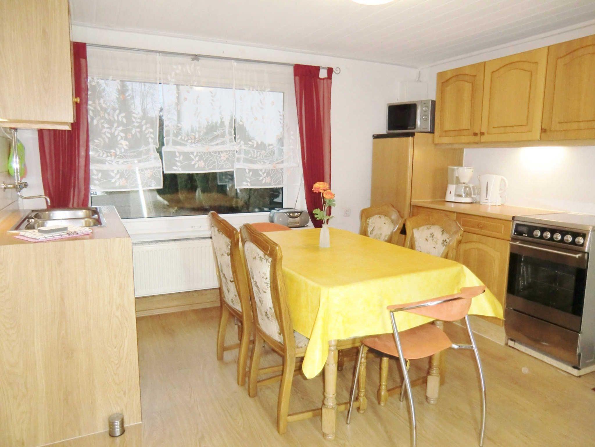 Das 80m² Ferienhaus für bis zu 6 Personen verfügt über ein Wohn-/Schlafzimmer mit Doppelbett (180x200, getrennte Matratzen) und einem Einzelbett (90x200), ein seperates Schlafzimmer mit Doppelbett (180x200, getrennte Matratzen) und einem Einzelbett (90x200) sowie ein drittes Schlafzimmer (Durchgangszimmer) mit Doppelbett (180x200, getrennte Matratzen). Der Wohnraum verfügt über einen Flachbildfernseher. Außerdem im Ferienhaus vorzufinden sind eine Küche mit Kühlschrank, Kaffeemaschine, Wasserkocher, Mikrowelle, Herd mit Backofen, Tischbackofen, Geschirr, Kochköpfe, Besteck und ein Esstisch sowie zwei Bäder jeweils mit Duschkabine, Toilette und Waschbecken. Im Wintergarten mit anschließendem Zimmer befindet sich ein großer Tisch für 8 Personen.