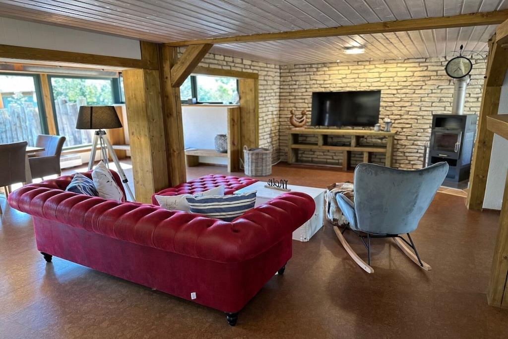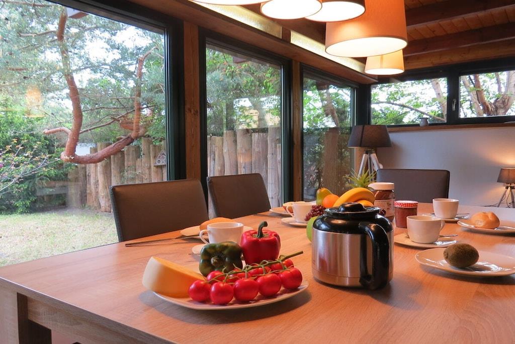 Verbringen Sie auf der großen Bambusholz-Terrasse wunderbare Sonnenstunden und Abende. Das Ferienhaus verfügt über einen großzügigen Wohnbereich mit Kamin und Essbereich mit Blick in den Garten. Neben dem Wohnbereich befindet sich ein kleines Bad mit Dusche und WC. Die offene Küche ist modern und vollständig eingerichtet. Im hinteren Teil befindet sich ein Schlafzimmer mit Doppelbett von 1,80m x 2,00m und im abgetrennten Nebenraum ein einzelnes WC. Das große Hauptbad hat eine Badewanne, Dusche und WC. Waschmaschine und Trockner befinden sich ebenfalls auf dieser Ebene. In der oberen Etage finden Sie zwei Schlafzimmer, wobei das kleine Zimmer mit zwei Betten von 1,40m x 1,90m nicht nur als Kinderschlafbereich genutzt werden kann. Im zweiten Schlafzimmer finden Sie ein Doppelbett mit 1,80m x 2,00m Größe.
