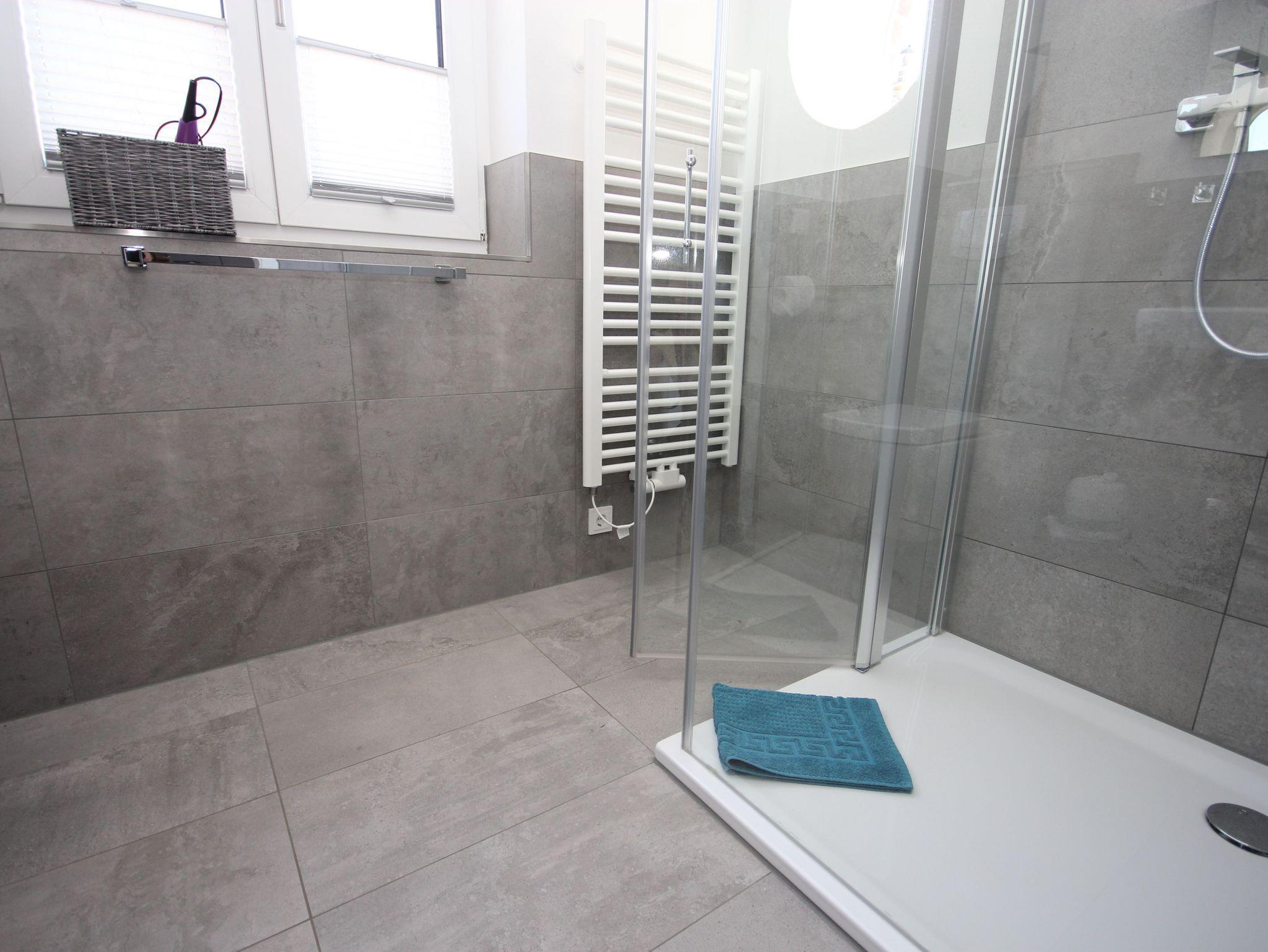 Das Bad, mit der ebenerdiger Dusche sowie Haarföhn, runden die Einrichtung ab.