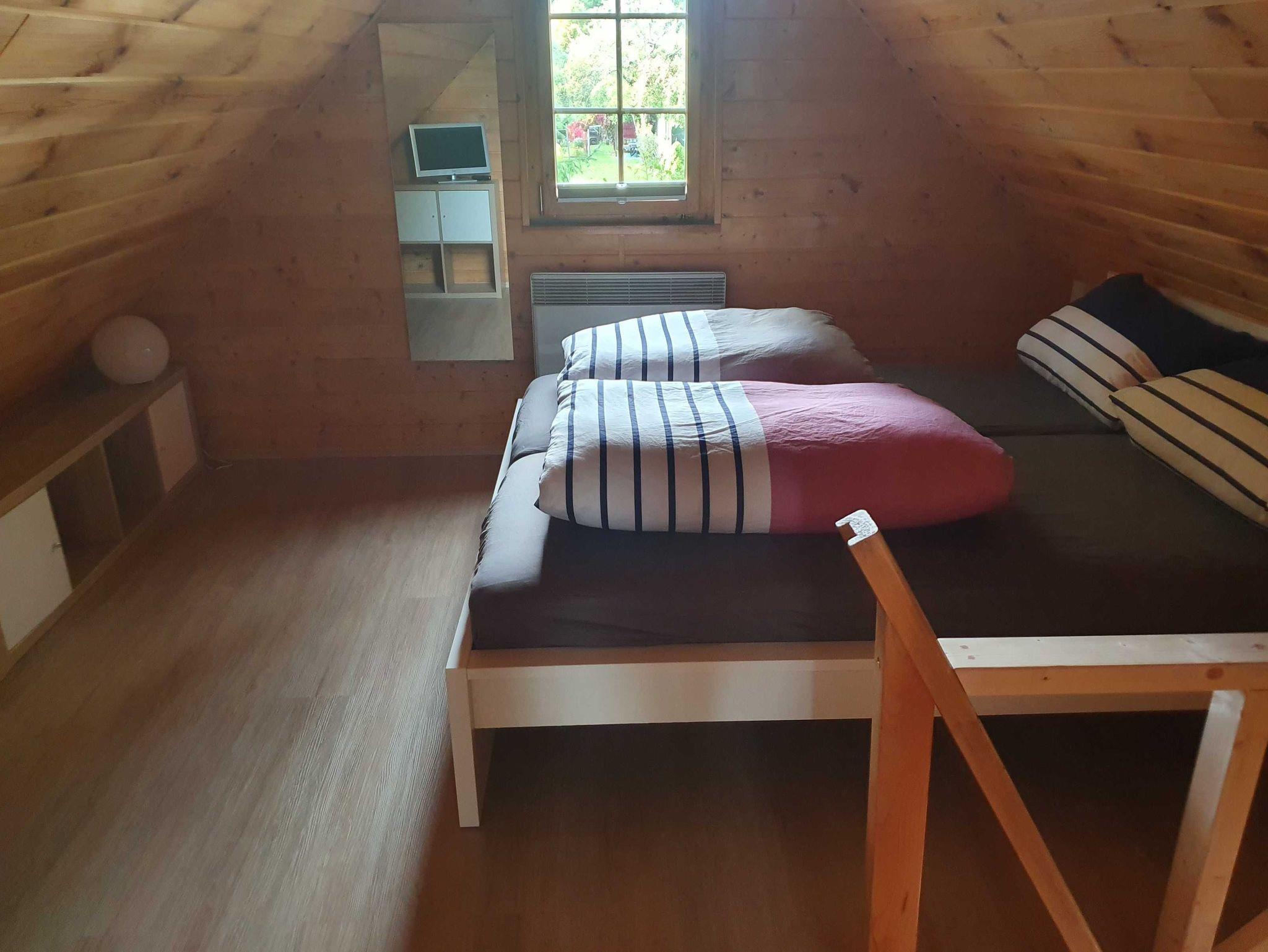 Schlafraum enthält ein Doppelbett mit 160 cm Breite, der Zweite zwei