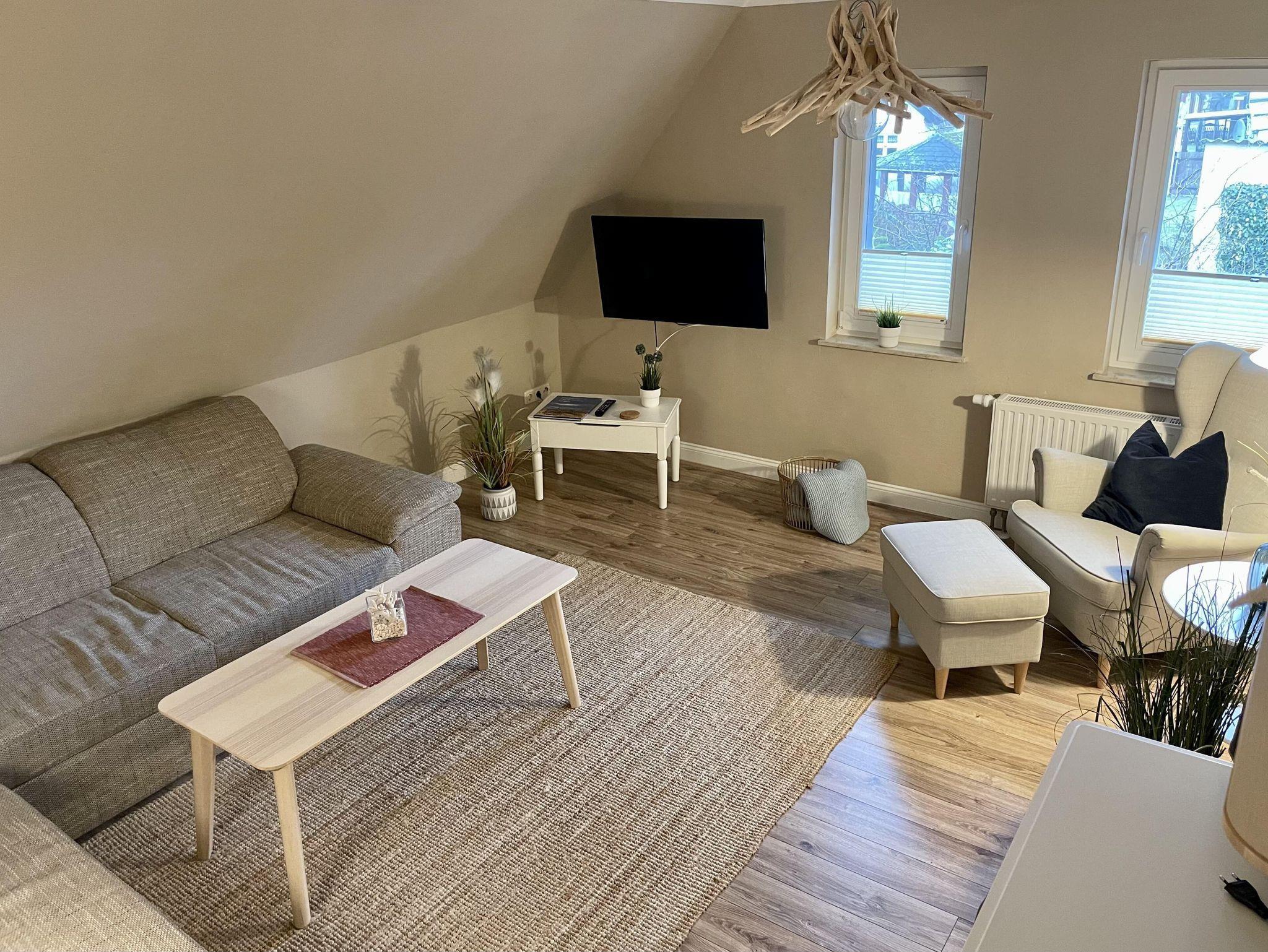 Die Wohnung wurde mit viel Liebe zum Detail von den Vermietern eingerichtet.Das Wohnzimmer verfügt über eine gemütliche Couch, SAT- TV., einer HIFI- Anlage und CD- Player. Im Schlafzimmer befindet sich ein Doppelbett 1,80 x 2,00 cm (mit getrennten Matratzen) und viel Stauraum. Auch bei der Küchenausstattung wurde auf jedes Detail geachtet, damit die Gäste sich rundum Wohlfühlen können.