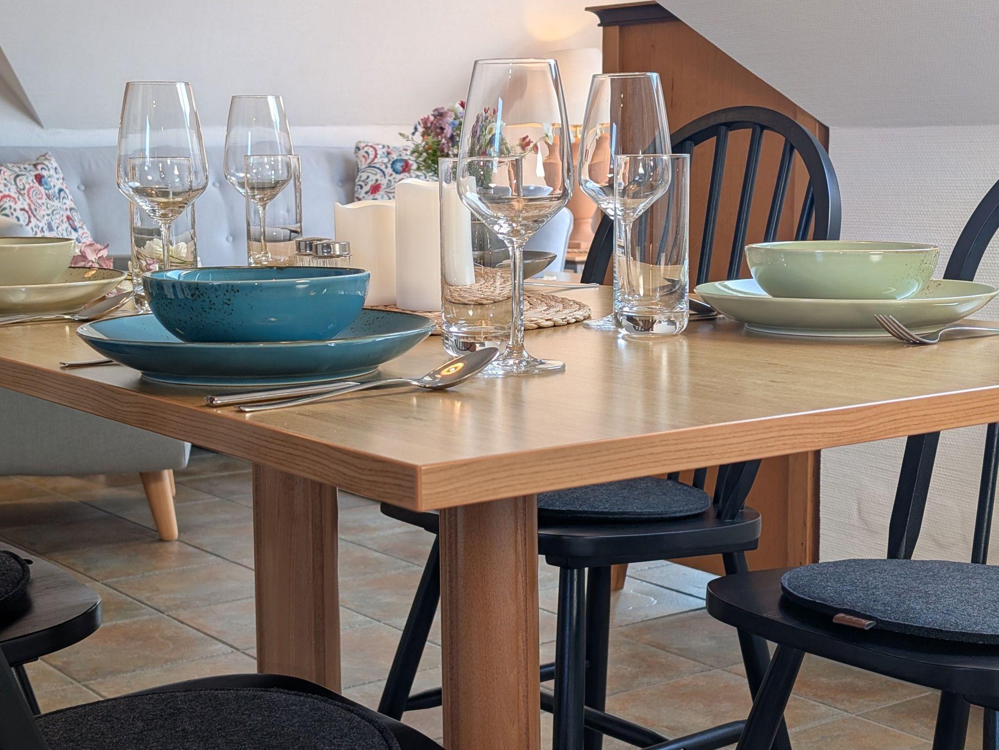 In der offenen Küchenzeile finden Sie einen Essplatz, einen Geschirrspüler, Mikrowelle und Cerankochfeld, sowie umfangreiche Küchenutensilien zur Zubereitung von leckeren Speisen. Für die nächtliche Ruhe stehen Ihnen 2 Schlafzimmern zur Verfügung. Im 1. Schlafzimmer befindet sich ein Doppelbett 1,80 x 2,00 m (getrennte Matratze) und das 2. Schlafzimmer verfügt über 2 Einzelbetten 0,90 x 2,00 m, für ausreichend Stauraum ist gesorgt. Das Bad ist mit einer Badewanne ausgestattet. Für unsere kleinen Gäste können Sie Kinderreisebett und Kinderhochstuhl à 10,00 € /pro Woche dazubuchen. Die Wohnung wird mit Bettwäsche übergeben, Handtücher können bei der Zimmervermittlung dazu gebucht werden für 7,00 € pro Person (1 Badetuch, 1 Handtuch). Der Parkplatz befindet sich im Aussenbereich.