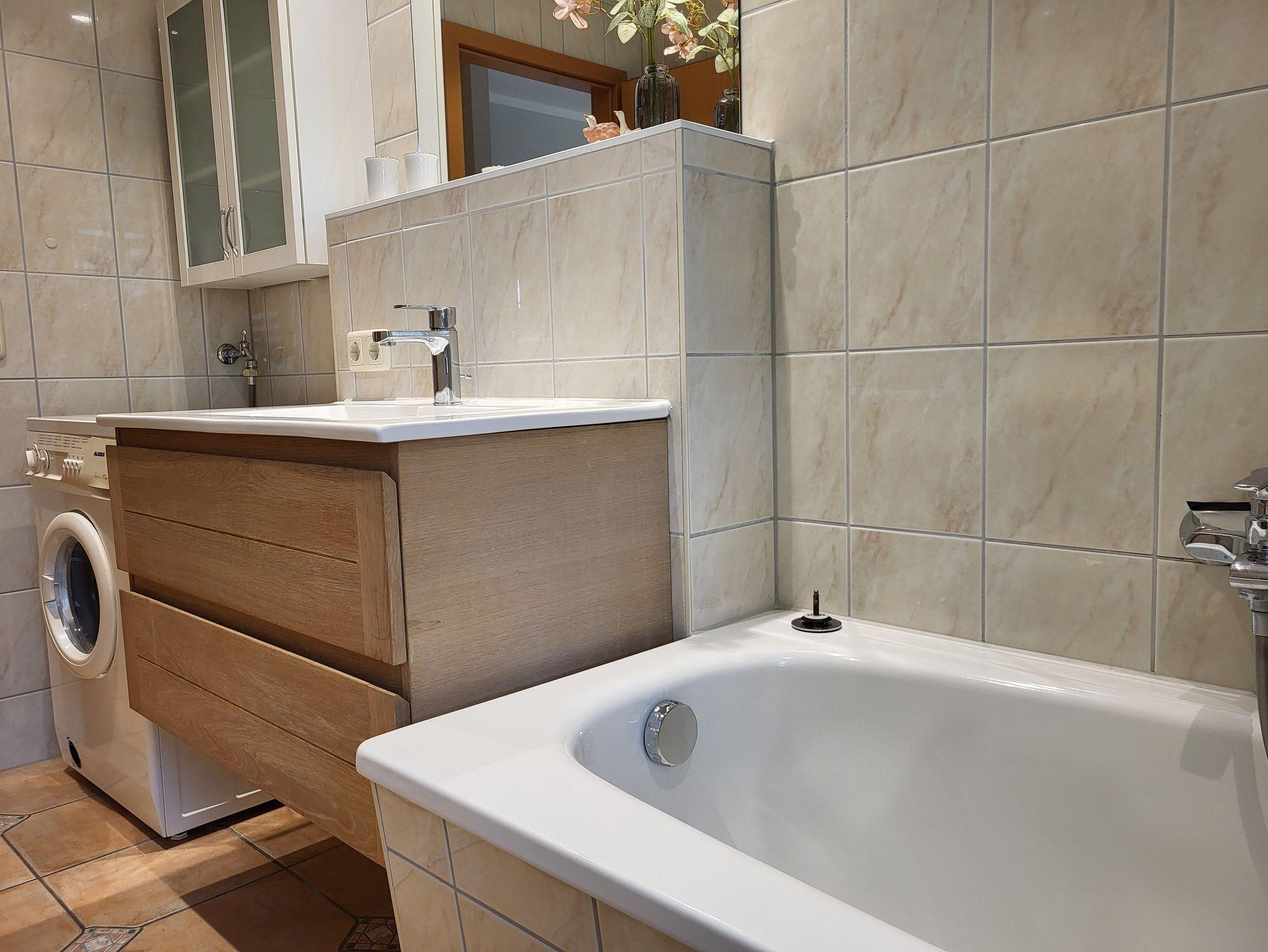 Die separate Küche ist mit einer Einbauküche mit Mikrowelle, Geschirrspüler, großzügiger Kühl- und Gefrierkombination und einem Herd mit Backofen ausgestattet, sodass der Zubereitung leckerer Mahlzeiten nichts im Wege steht. Kostenloses WLAN steht selbstverständlich auch bereit. Die Wohnung wird inklusive Bettwäsche übergeben. Handtücher können in der Zimmervermittlung für 7,00 pro Person (1 Badetuch, 1 Handtuch) dazugebucht werden.