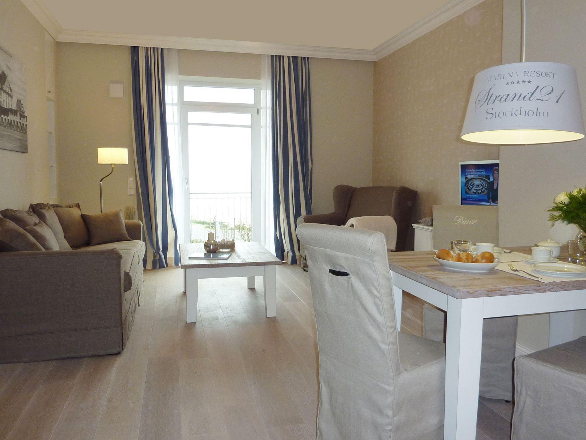 Diese exklusive Wohnung liegt im 2. OG hinter historischer Fassade, die beim Neubau erhalten geblieben ist. Sie bietet vom Wohn-, Schlaf- und Essbereich einen wunderschönem Blick auf den Strand, die Nordsee und die Halligen. Die helle 2-Zimmerwohnung ist u.a. mit hochwertigen Einbauschränken, moderner Landhaus-Küche, einer Rain Air Dusche und einem überlangen Bett ausgestattet. Italienische Fliesen [&] Eichenparkett mit Fußbodenheizung sowie die Einrichtung im Riviera Maison Stil schaffen eine Wohlfühlatmosphäre. Der windgeschützte Süd-Ostbalkon (über 10qm) bietet eine Sonnenliege und zwei Sessel zum Träumen. Nach einem langen Urlaubstag entspannen sie in der hauseigenen Sauna und lassen Ihre Seele baumeln.