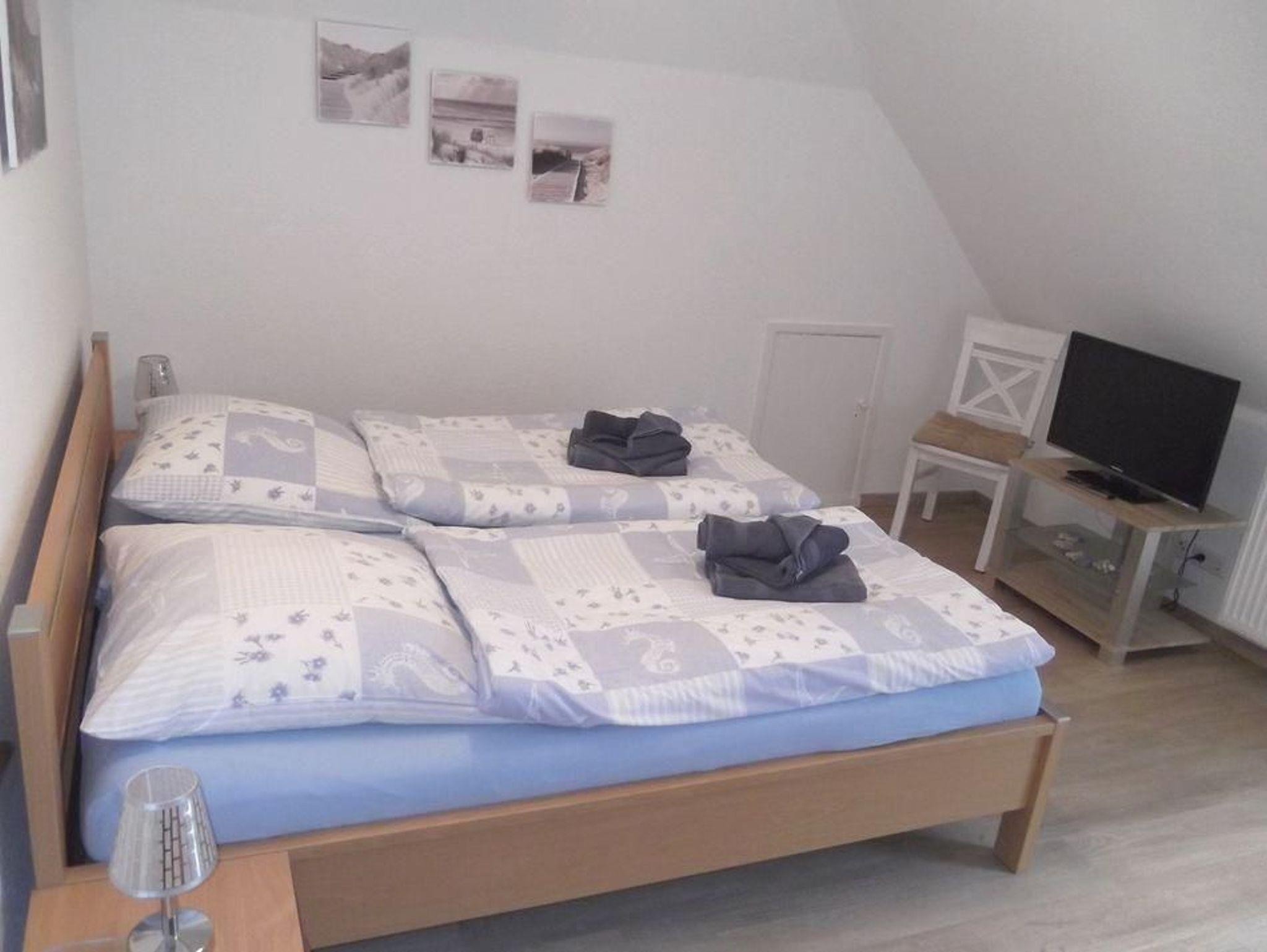 Diese schöne 65 m² große Obergeschosswohnung liegt in der Nähe des Südstrands. Dieser ist nur 400m entfernt. Die Wohnung ist für 2 bis 4 Personen geeignet und bietet neben dem hellen, gemütlichen Wohnzimmer mit Balkon, zwei Schlafzimmer, eine gut ausgestattete Küche und ein Duschbad. Die Schlafzimmer sind jeweils mit einem Doppelbett und zwei Einzelbetten ausgestattet. In der Küche befinden sich u.a. ein Backofen und ein Geschirrspüler.