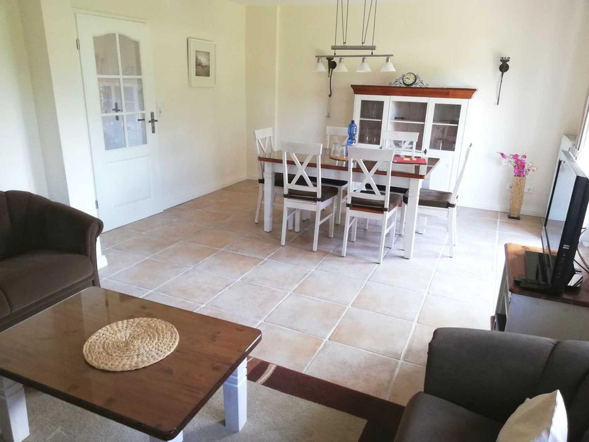 Diese komfortable 95 qm große, ruhig gelegene Haushälfte bietet Platz für zwei bis sechs Personen. Im Erdgeschoss befindet sich eine separate Küche, ein Gäste-WC und das großzügige Wohnzimmer mit einem Essplatz für sechs Presonen. Vom Wohnzimmer aus haben Sie einen direkten Zugang zur Terrasse. Im ersten Obergeschoss finden Sie ein Duschbad und zwei Schlafzimmer, eines davon mit einem Doppelbett und das zweite mit zwei Einzelbetten. Das dritte Schlafzimmer mit einem Doppelbett liegt im zweiten Obergeschoß.