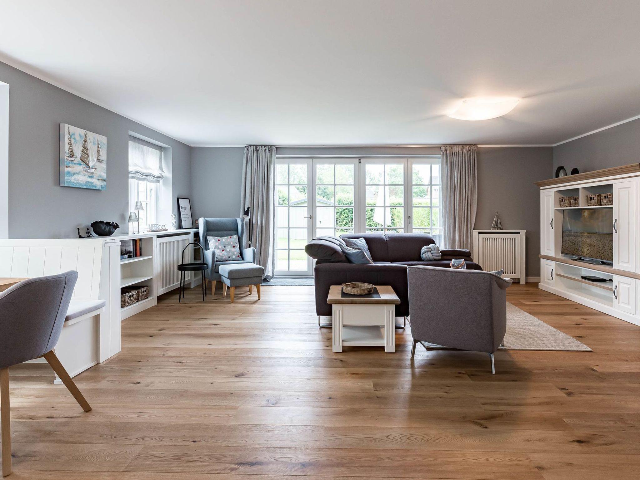Schönes Doppelhaus in moderner Architektur wartet im Grünstreifen in Wyk auf Ihren Besuch. Klare Formen und Farben sorgen für eine ruhige und entspannte Atmosphäre. Die ganze Familie findet ausreichend Platz im Haus. Gemütliche Abende vor dem Kamin mit Wellness in der eigenen Sauna gehören in den kalten Monaten genauso dazu wie die Stunden im eigenen Strandkorb im Garten und dem Frühstück auf der Terrasse. Der Weg zum Strand ist in wenigen Minuten zu Fuß zu meistern und das bunte Leben in Wyk liegt genauso nahe. Wir freuen uns auf Sie!