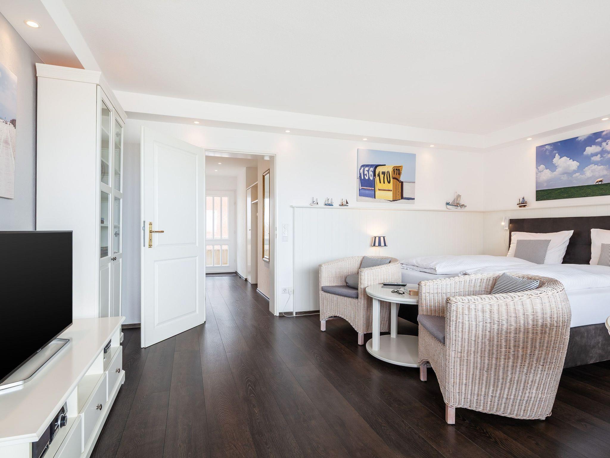 Die einzigartige Lage - direkt am 15km langen Sandstrand und eingebettet in die friesische Idylle des Badeortes Wyk - bietet Urlaub pur direkt vor der Tür: Strand und Baden, Flanieren am Sandwall (Strandpromenade), Restaurants, Cafés, Einkaufsmöglichkeiten, Fähranleger und vieles mehr. Hier geht alles zu Fuß oder per Fahrrad.
