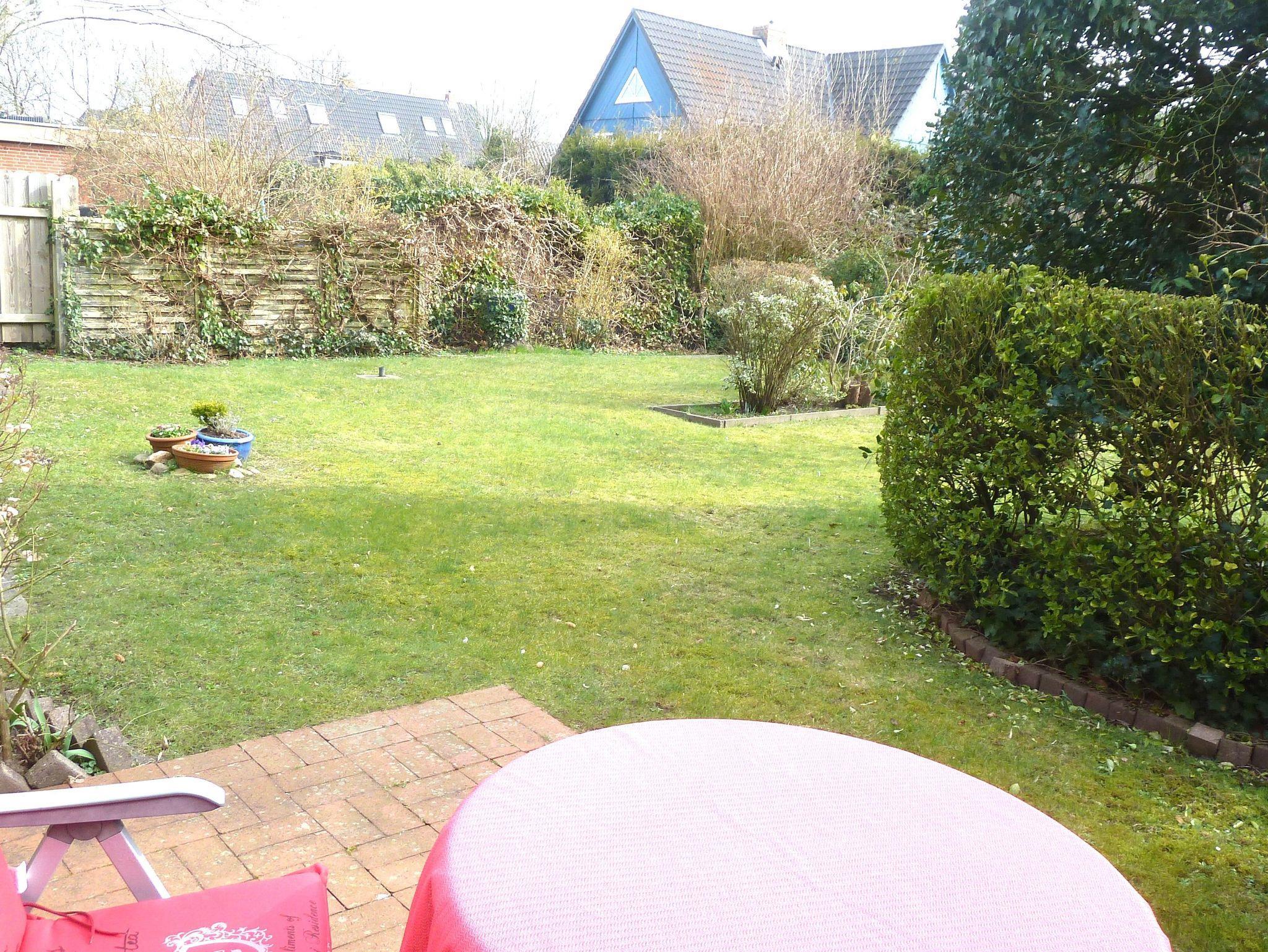 Im Garten befindet sich ein kleiner Gartenschuppen, wo die Fahrräder untergestellt werden können.