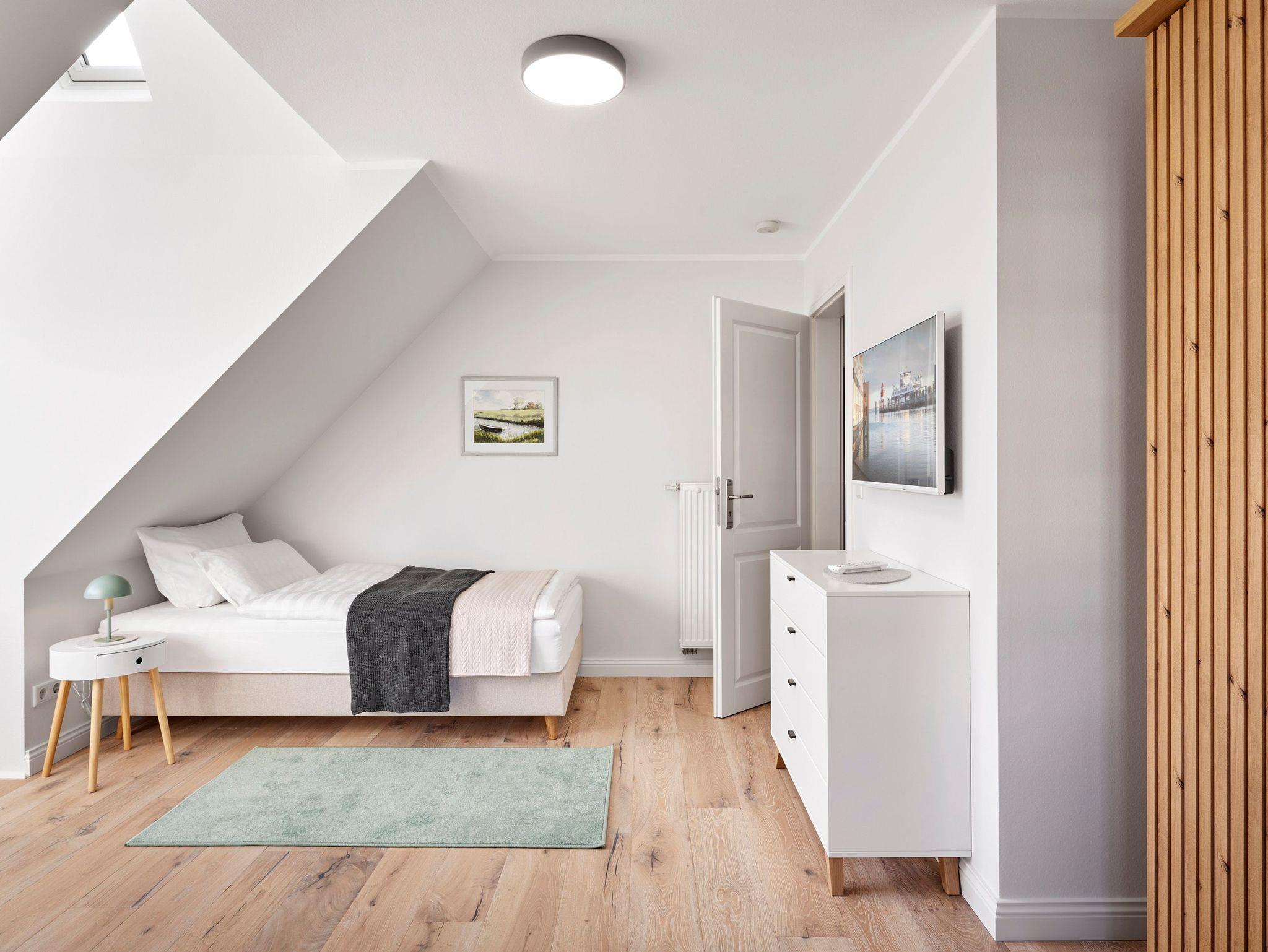 Dieses elegante Ferienhaus auf zwei Ebenen vereint Großzügigkeit, stilvolles Design und höchsten Komfort inmitten der charmanten Gassen von Wyk. Das Erdgeschoss besticht durch einen lichtdurchfluteten Wohn- und Essbereich, eine moderne Küche, einen Hauswirtschaftsraum sowie ein vielseitig nutzbares Arbeits- oder Lesezimmer. Ergänzt wird das Raumangebot durch ein geschmackvolles Duschbad mit WC.
