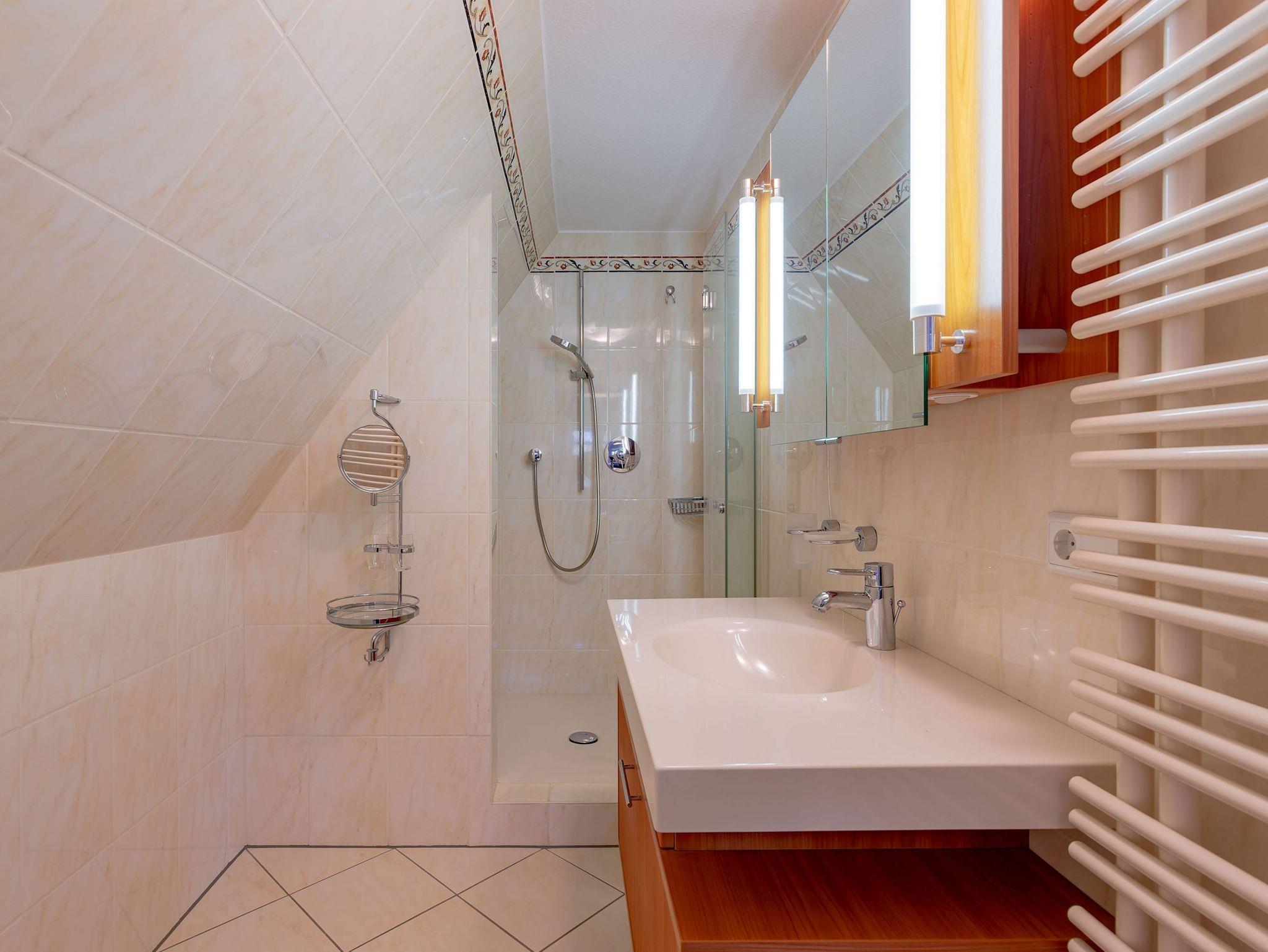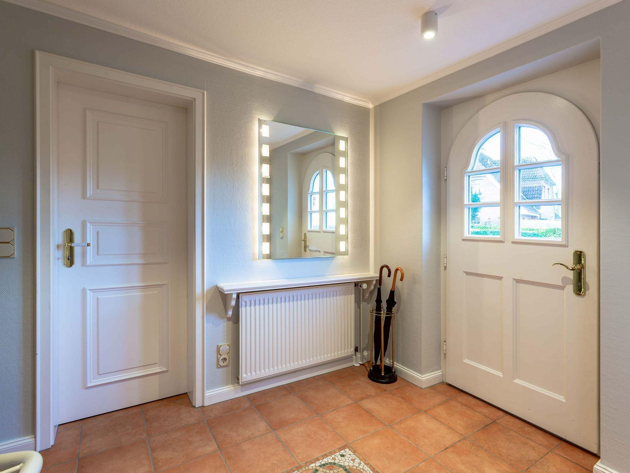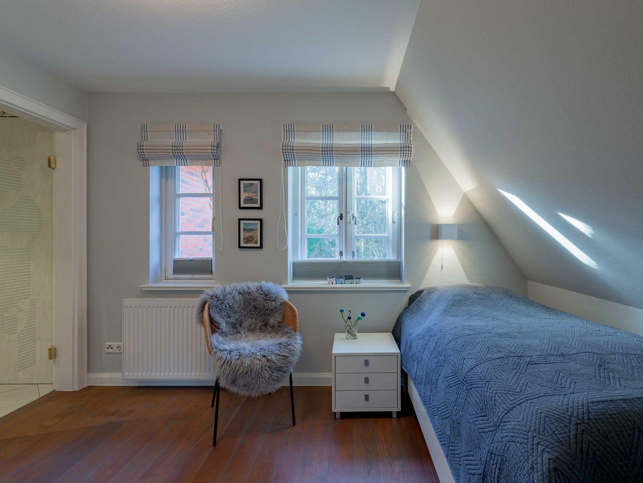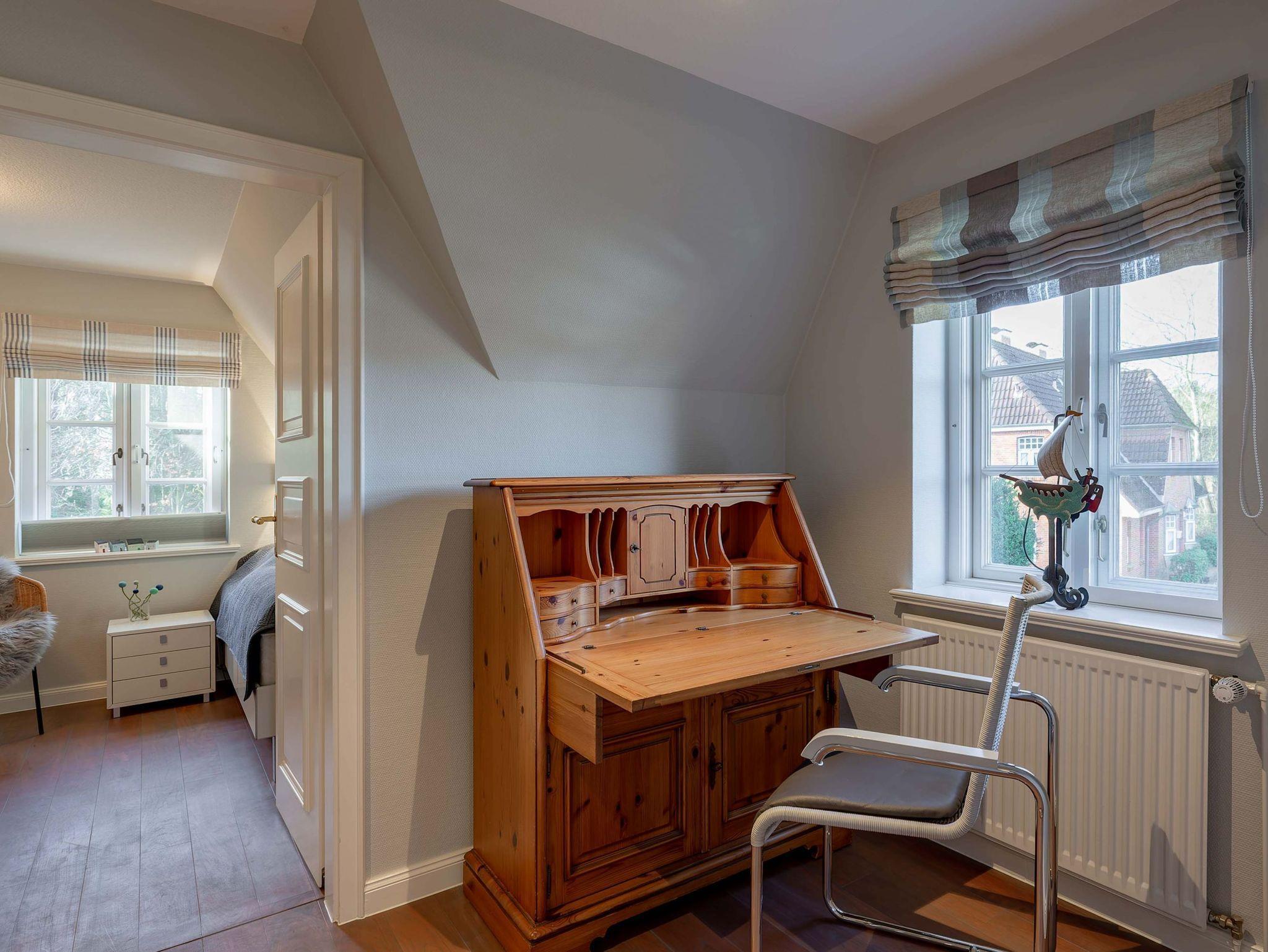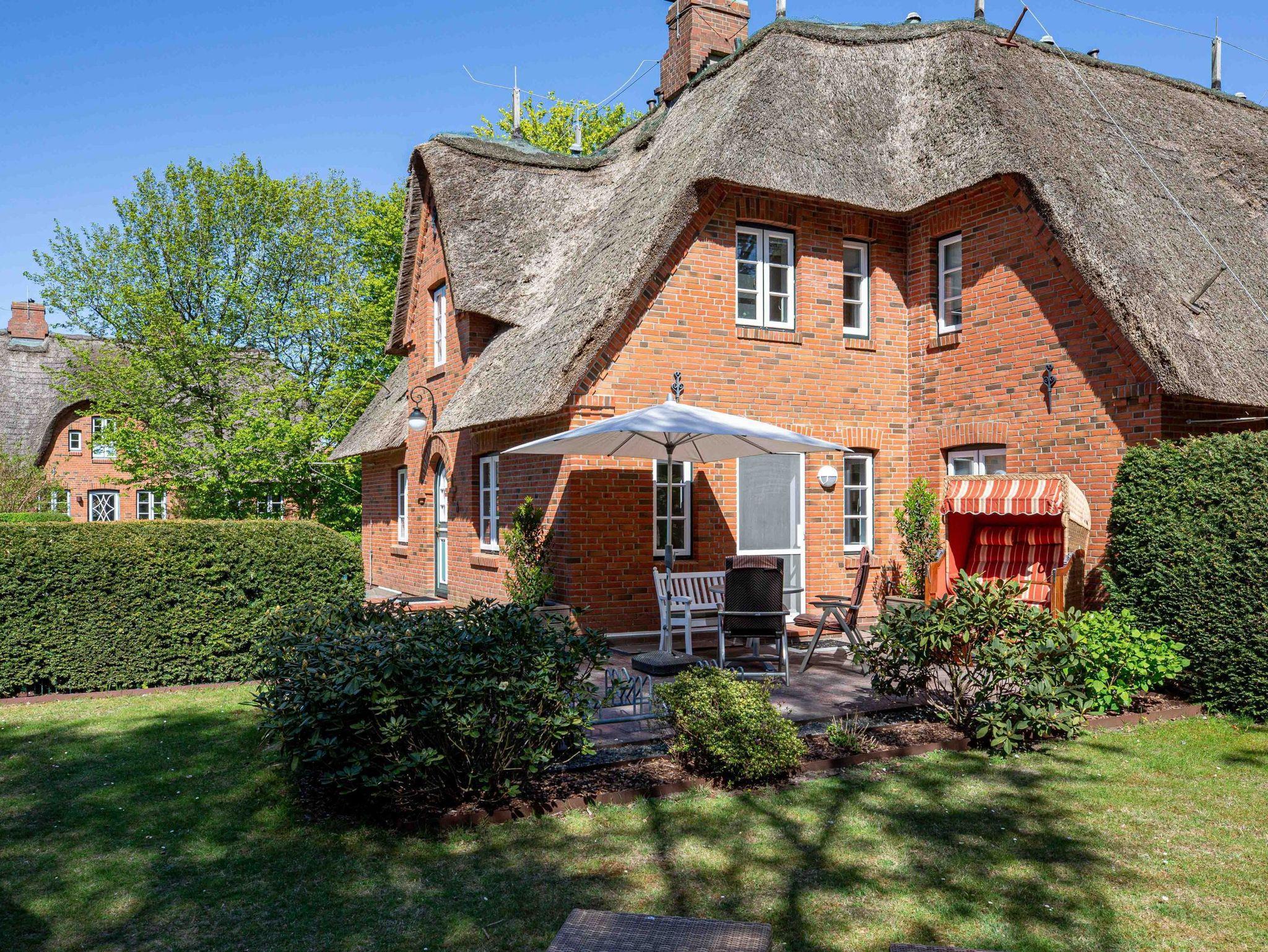 Wir begrüßen Sie im Haus Edda, unter dem Reetdach eines Drei-Parteien-Hauses im friesischen Baustil. Im Haus Edda stehen Ihnen 90 qm sowie ein separater Eingang zur Verfügung. Der kleine feine Garten grenzt direkt an den alten Kurpark in Wyk. Wenn Sie diesen durchqueren, gelangen Sie in wenigen Minuten zur Strandpromenade und haben von dort den freien Blick auf die Nordsee und die Halligen. Genießen Sie die Sonnenstunden im Strandkorb auf der Terrasse. Ein weiterer Strandkorb steht am Strand für Sie bereit. Für gemütliche Abende im Haus sorgt der schöne Mylin-Kachelofen ? an windigen und kühlen Herbst- und Winterabenden genau das Richtige, um zu entspannen. Die perfekt ausgestattete Küche mit großer Kochinsel macht Lust auf gemeinsames Kochen. Es schließt sich der Essbereich an, der in den Wohnraum mit Leseecke übergeht. Ein Gäste-WC komplettiert das Erdgeschoss. Die beiden Schlafräume mit jeweils einem angrenzenden Bad befinden sich im Obergeschoss.
