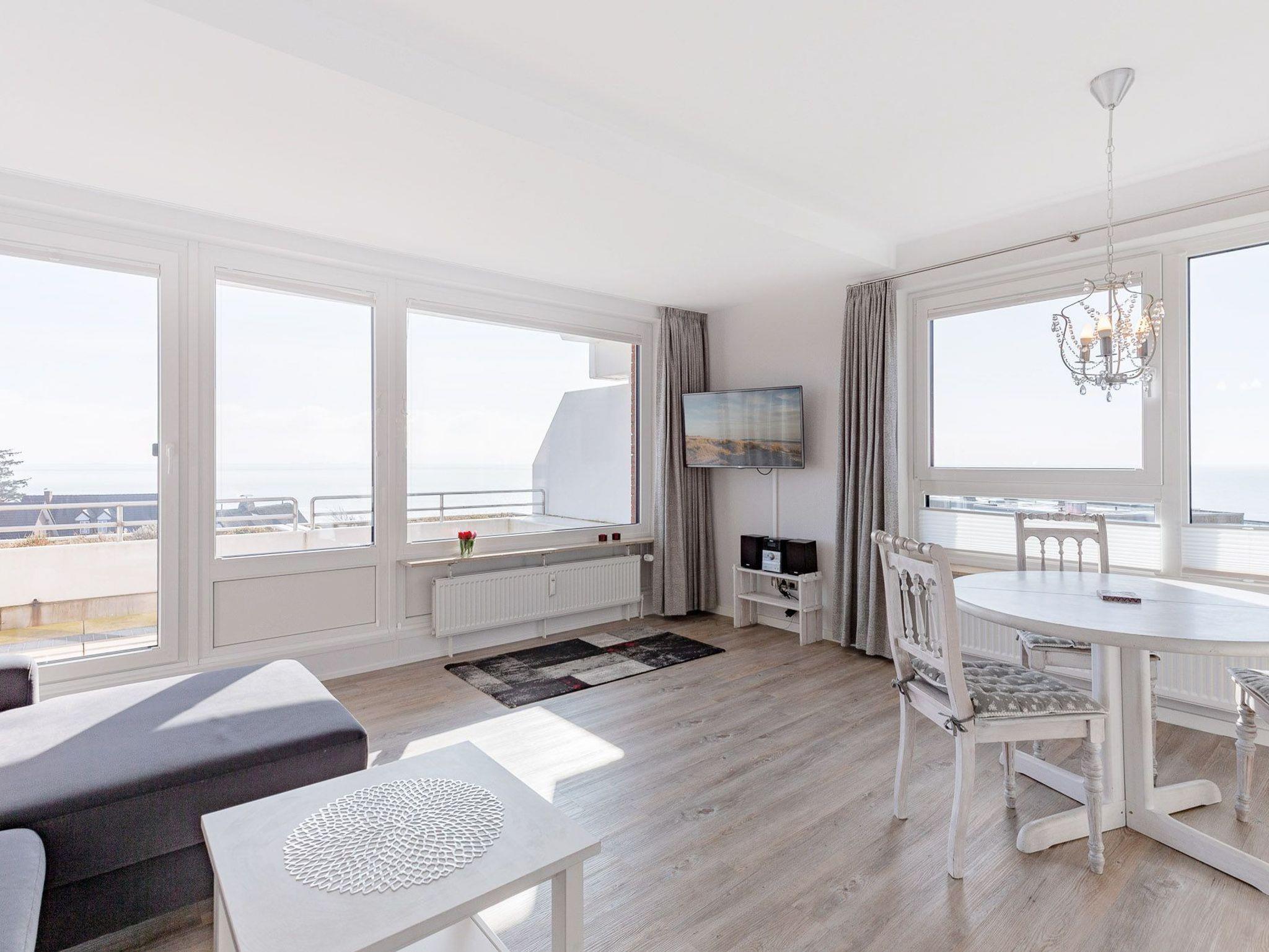 Zwischem dem Wyker Südstrand und Nieblum steht das beliebte Terrassenhaus Haus Halligblick. Die Lage ist wohl einmalig: direkt am Meer, mit Blick nach Süden in Richtung der Halligen in bester Umgebung. Ganz in der Nähe liegen der Golf- und Sportflugplatz, die bequem zu Fuß zu erreichen sind. Von dort ist es nur ein Sprung nach Greveling, der Gruppe von Reethäusern im Friesenstil. Nach Nieblum, einem der schönsten Orte Schleswig-Holsteins, ist es kaum weiter als zum Zentrum Wyks. Nicht ohne Grund gilt der Südstrand als Geheimtip. Die Wohnung 31 ist eine Eckwohnung und Sie haben einen phantaschtischen Blick auf die Halligen und auch nach Amrum.