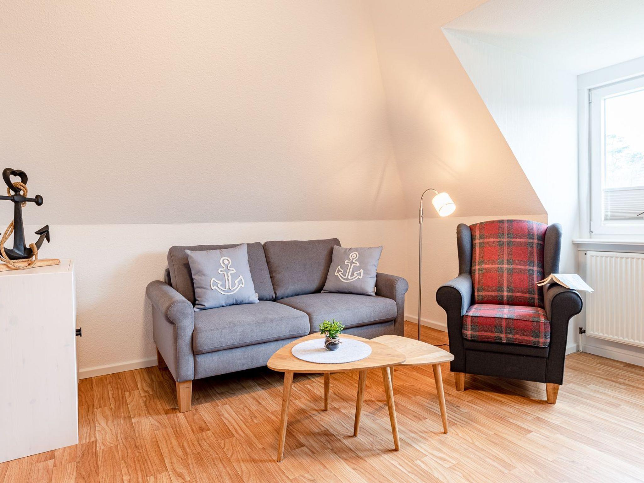Das gemütliche Wohn-/Esszimmer laden mit der Couch und dem Lesesessel zum TV gucken oder Buch lesen ein.