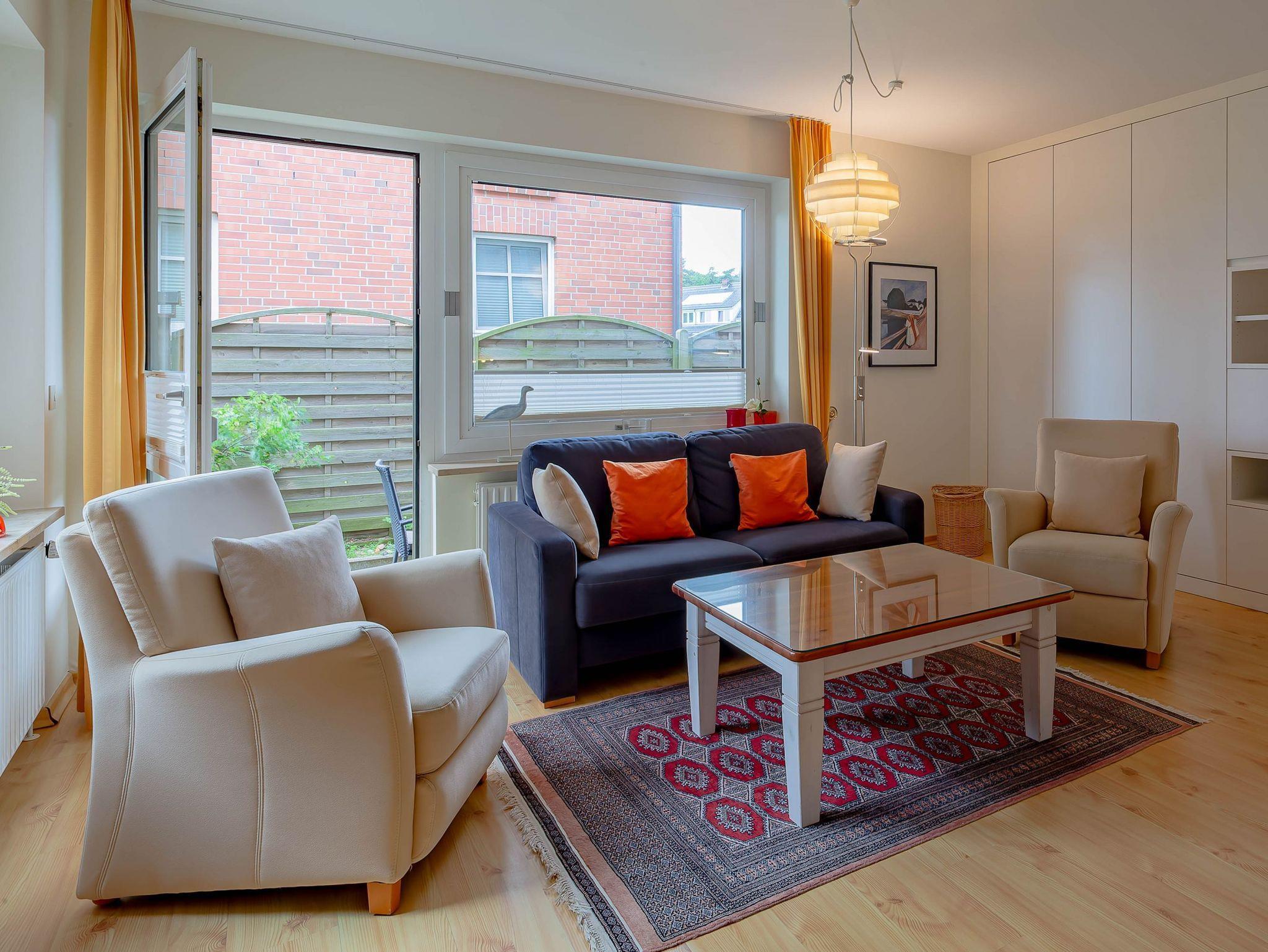 Wohnen am Wyker Südstrand im Haus Pidder Lyng. In der ersten Reihe am Meer finden Sie in Haus Pidder Lyng drei schöne Apartments die zum Urlaub am Meer einladen. Fühlen Sie die Nordseebrise und hören die Nordseewellen rauschen. Nur wenige Schritten und Sie haben Sand unter Ihren Füßen. In der Wohnung 2 im Erdgeschoss genießen Sie Ihr Frühstück auf Ihrer Terrasse. Die Wohnung ist der perfekte Ausgangspunkt für Ihren Urlaub auf Föhr. Nur wenige Schritte und Sie sind auf der Promenade, die Sie ins Herz von Wyk führt.