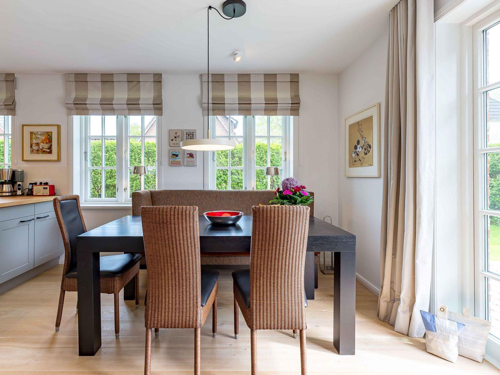 Das Stäär Hüs ist eine neugebaute, moderne Doppelhaushälfte in Wyk, von der es nur wenige Gehminuten zum Südstrand sind. Aber auch das Stadtzentrum von Wyk ist fussläufig erreichbar. Sie werden sich in der offenen Architektur und freundlichen Farbgebung des Hauses sofort wohl fühlen: In der harmonischen Atmosphäre der exklusiven Einrichtung (u. a. BW), die Stil mit Gemütlichkeit kombiniert, lässt es sich wunderbar entspannen. Auf zwei Terrassen können Sie von morgens bis abends die Sonne und die ruhige Umgebung genießen. Zwei Schlafzimmer laden mit Boxspring-Betten von Schramm und Bädern en Suite zum Erholen ein. Im Dachgeschoss findet sich ein kuscheliger Rückzugsraum z. B. zum Lesen oder Chillen. Ein Kamin läßt auch in der kälteren Jahreszeit keine Wünsche offen. Machen Sie das Stäär Hüs zu Ihrem zweiten Zuhause!