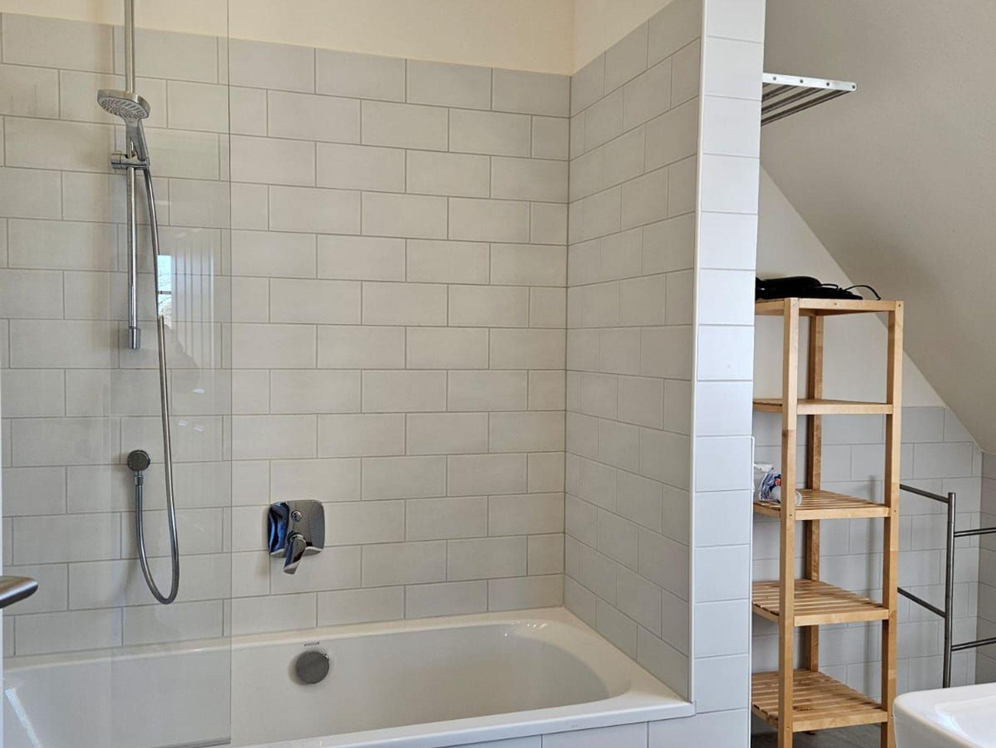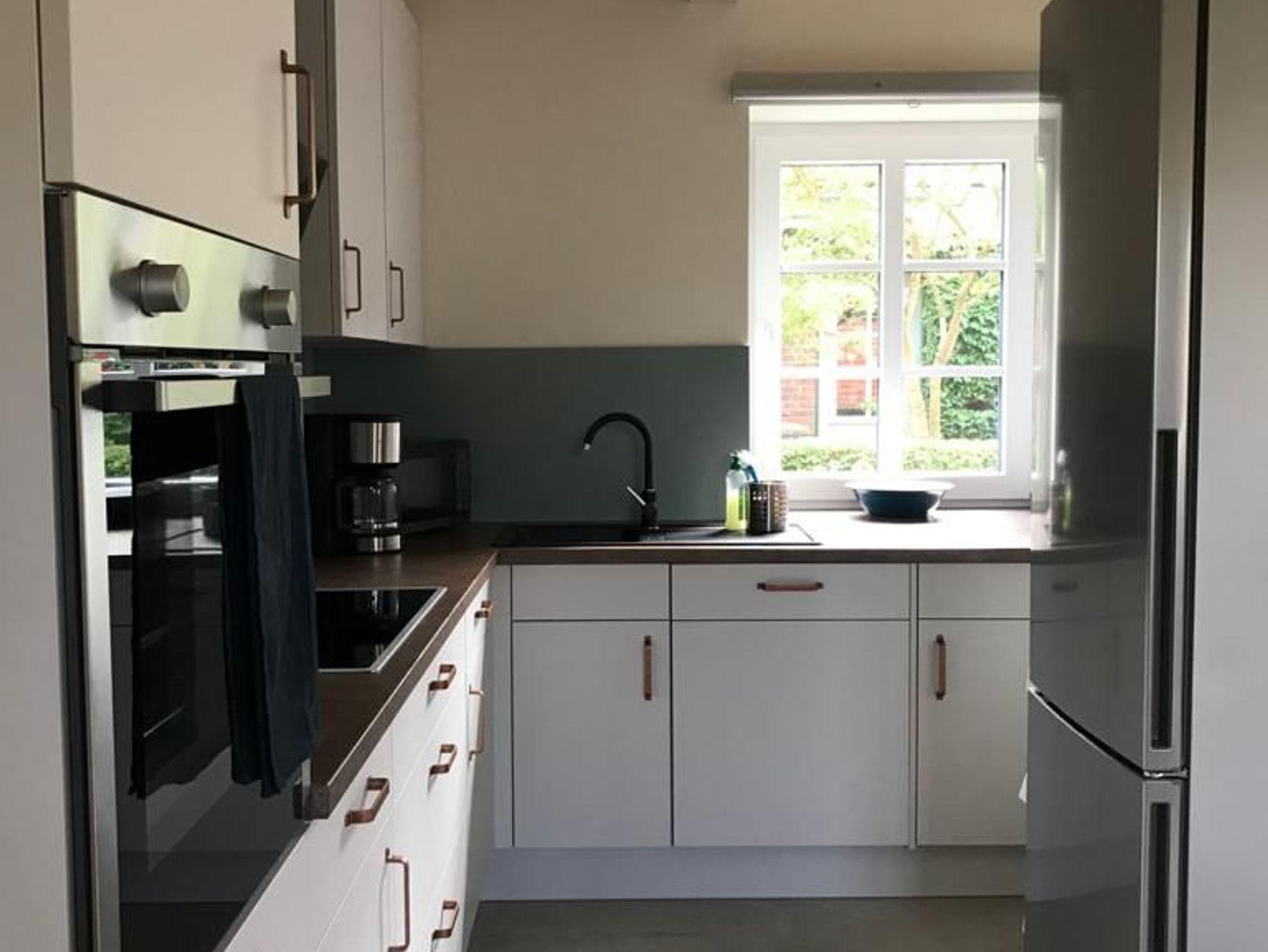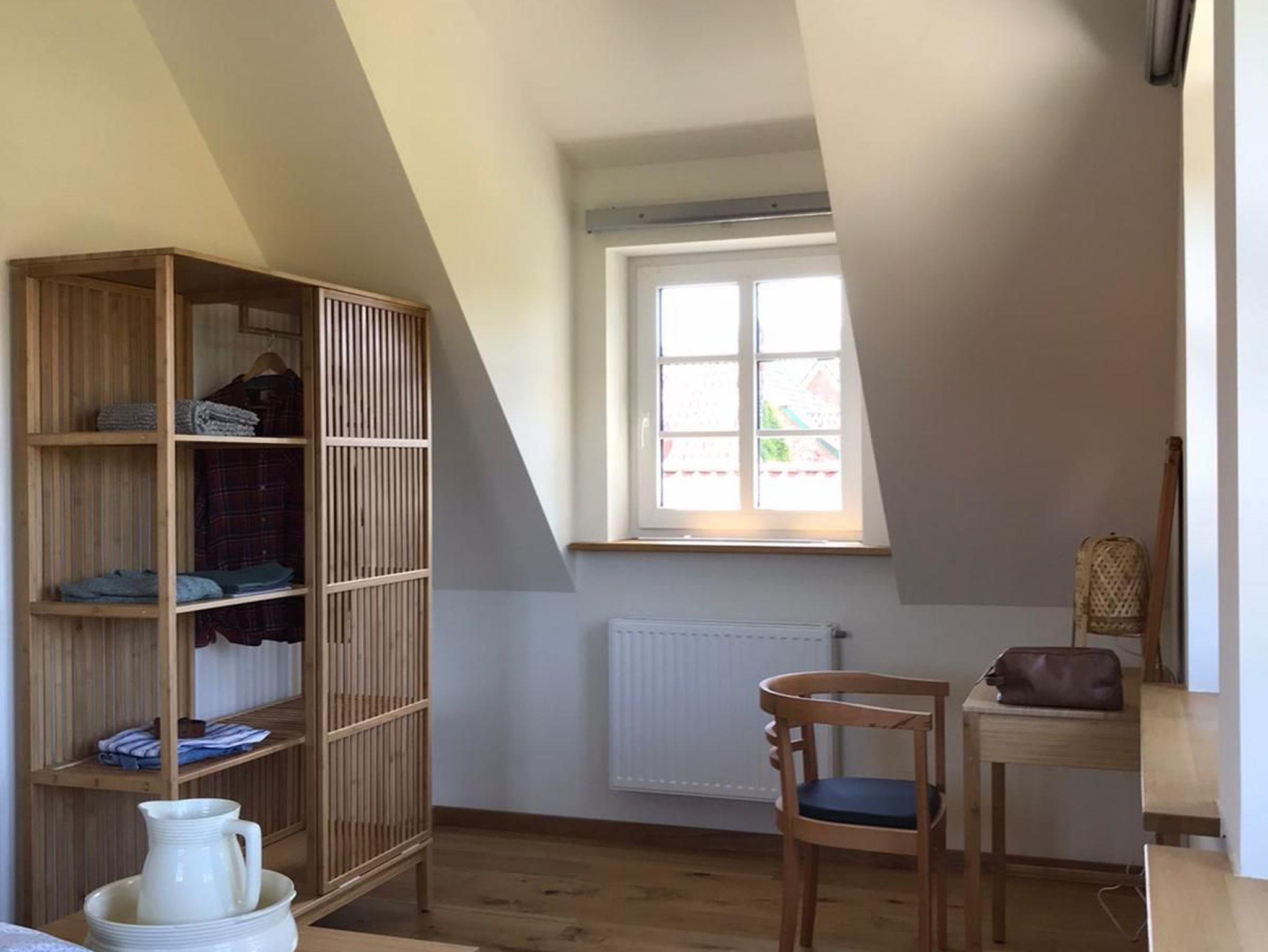 Die Küche ist mit Herd, Backofen, Mikrowelle, Kühl-/Gefrierkombination, Geschirrspüler, Waschmaschine sowie diversen Kaffeemaschinen versehen.Vom Wohnzimmer erhält man weiterhin Zugang zur eigenen Außenterrasse. Im Dachgeschoss befindet sich ein geräumiges Schlafzimmer mit komfortablem Doppelbett (zwei Einzelmatratzen) sowie ein kleineres Schlafzimmer als zusätzlicher Multifunktionsraum. Das Badezimmer mit Wanne ist ebenfalls im Dachgeschoss untergebracht.Ein Parkplatz für ein Fahrzeug normaler Größe (kein SUV / Bus) steht auf dem Grundstück zur Verfügung.Nach Rücksprache können Fahrräder unter einer Überdachung wind- / wettergeschützt abgestellt werden.