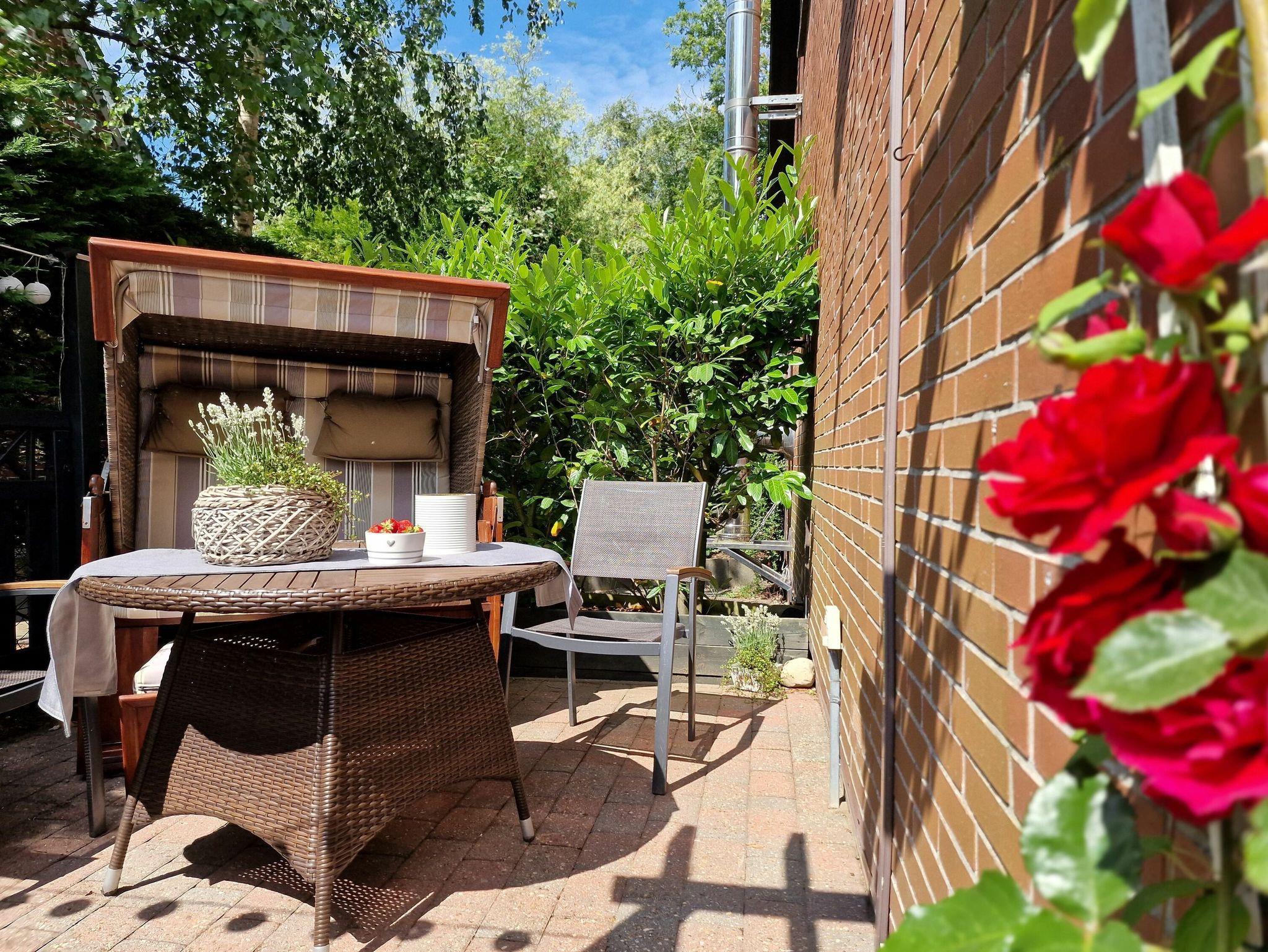Genießen Sie Ihren Urlaub in unserer gemütlichen, liebevoll eingerichteten Ferienwohnung. Entspannen fängt beim Wohlfühlen an. Mit gemütlichen Dachschrägen, großzügigen, behaglichen Räumen befindet sich die Wohnung im 1. Obergeschoß. Neben dem Haus befindet sich eine lauschige Terrasse mit Sitzmöglichkeiten und Strandkorb sowie einen abschließbaren Fahrradabstellraum.