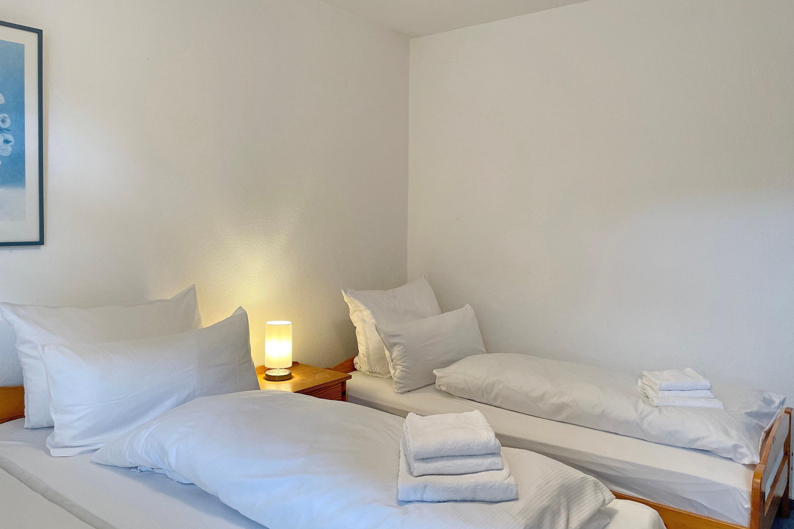 2025: Infos zum Wäschepaket (obligatorisch): Unser Wäschepaket besteht aus der bezogenen Bettwäsche, 1 Duschtuch, 2 Handtüchern, 1 Geschirrtuch und einem Badvorleger und gehört obligatorisch zur Buchung dazu. Ab 21 Übernachtungen bieten wir auf Wunsch einen kostenfreien Wäschewechsel an. Zusätzlich können Handtücher und Duschtücher optional nach Bedarf einzeln hinzugebucht werden.