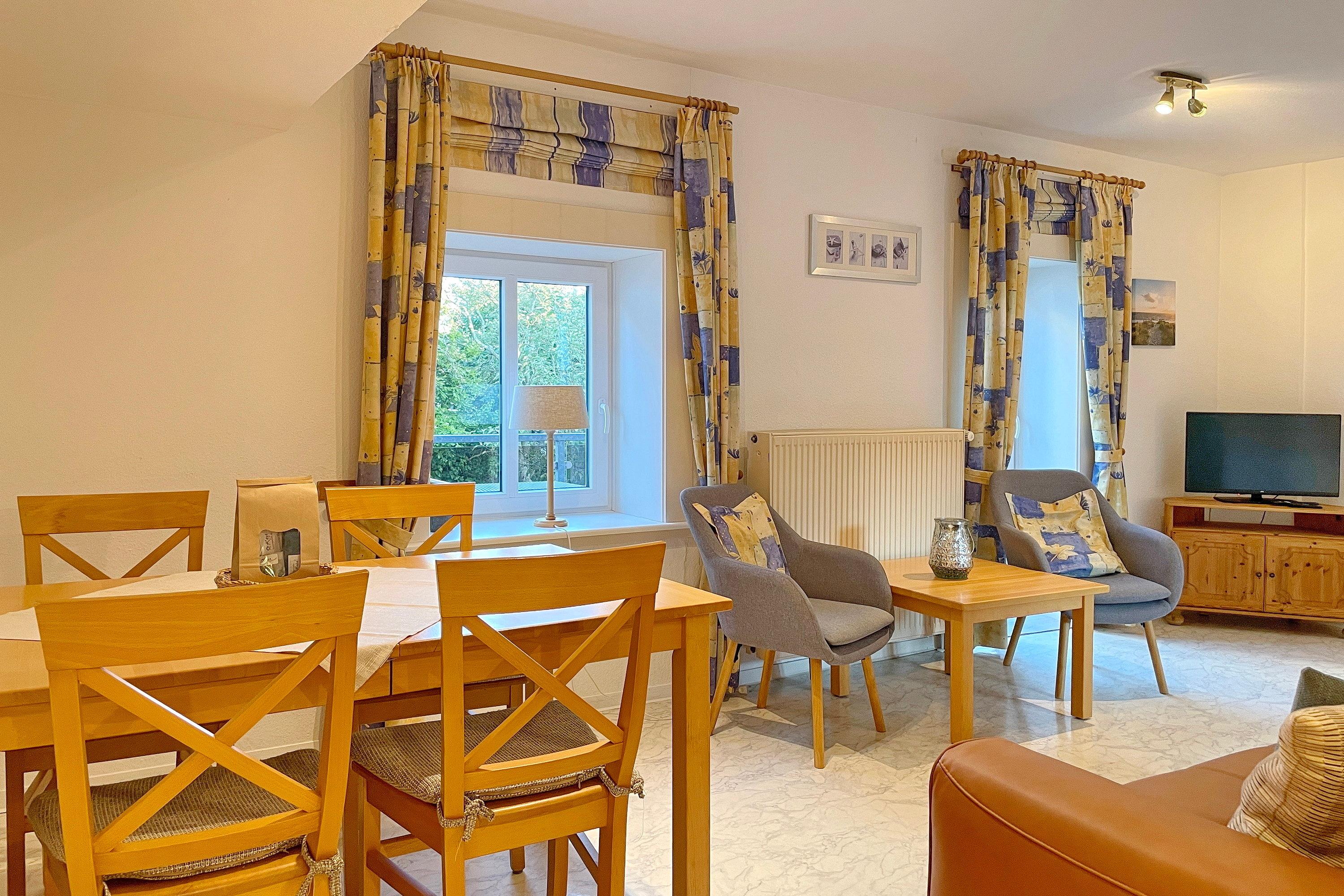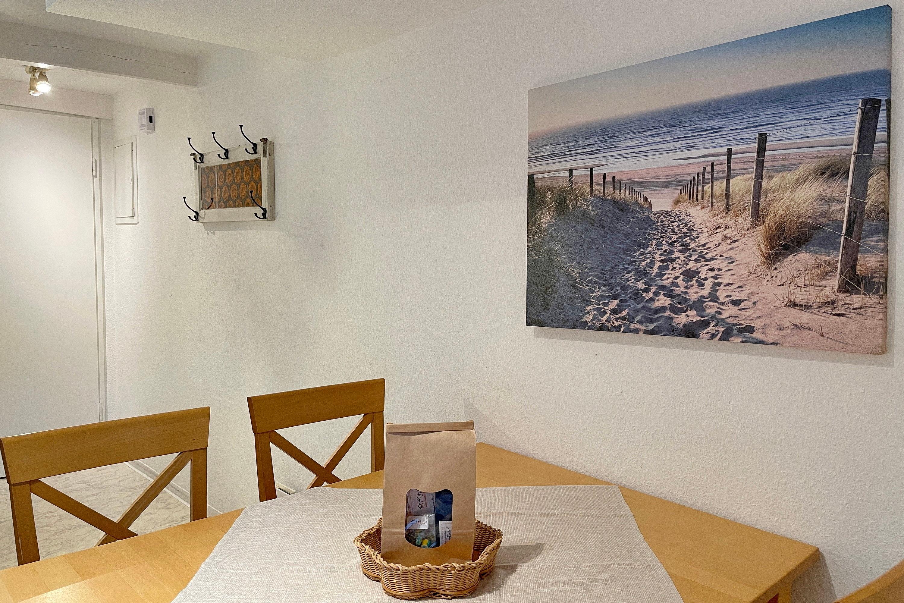 Die gemütlich eingerichtete Wohnung Nordstern ist hell und freundlich gestaltet und befindet sich im ersten Obergeschoss. Vom kleinen Flur aus gelangen Sie in das funktionale Duschbad mit Fenster und in den Wohn-, Essbereich. Warme Holztöne und schöne Farben verleihen der Wohnung eine besondere Note. Das Sofa ist bequem und kann für eine dritte und vierte Person zu einem Schlafsofa (160 cm x 200 cm) ausgezogen werden. Der Esstisch bietet genügend Platz. WLAN, Flachbild-TV und CD-Player finden Sie natürlich vor. Von hier aus gelangen Sie auch auf den Balkon, die separate vollausgestatte Küche mit Geschirrspüler, Kühlschrank, Kaffeemaschine (Senseo Duo) Ceranfeld-Herd mit Backofen und das geräumige Schlafzimmer mit Doppelbett (180x200 cm) und großem Kleiderschrank. Die Bäckerei, das Kino, gemütliche Cafés und Restaurants, der Edeka-Markt und viele kleine und größere Geschäfte befinden sich in unmittelbarer Umgebung genauso wie der Strand und das Meer natürlich..