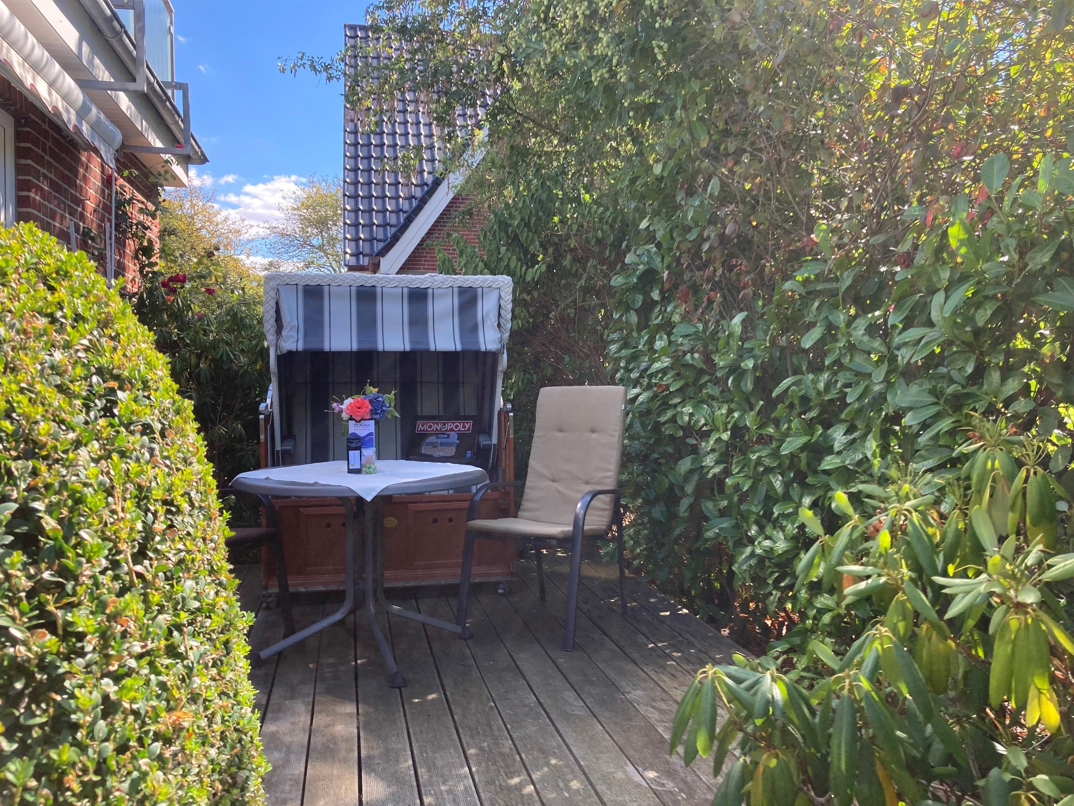Das Haus Brossolat liegt zentral im Rebbelstieg unweit des bekannten Friesenmuseums. Das gepflegte Grundstück ist mit wunderschönen Blumen bewachsen und bietet Ihnen drei Wohnungen namens Brossolat EG, Brossolat EG2 und Brossolat OG jeweils mit separaten Eingängen. Die Wyker Innenstadt und der Stadtwald mit dem beliebten Abenteuerspielplatz sind nur wenige Gehminuten entfernt. Die nach hinten gelegene Erdgeschosswohnung Brossolat EG 2 liegt ruhig und eingebettet in dem gepflegten Garten des Hauses Brossolat. Durch einen separaten Eingang gelangen Sie in einen hellen und freundlichen Vorflur. Der Wohnbereich ist unterteilt in eine gemütliche Sitzecke mit Flachbild-TV, WLAN und großer Fensterfront sowie dem geräumigen Essplatz im nordischen Stil. Das großzügige Schlafzimmer mit einem zweiten Fernseher verfügt über einen eigenen Ankleideraum. Von hier gelangen Sie ebenfalls auf den Terrassenplatz mit Gartenmöbeln, der zum friedlichen Verweilen einlädt. In der vollausgestatten Küche mit Backofen, Ceranfeld, Mikrowelle und guter Austattung finden Sie eine weitere kleine Essmöglichkeit vor. Das helle Badezimmer mit Badewanne und Fenster ist im maritimen Stil gehalten. Die Wohnung Brossolat EG 2 ist ein Domizil, in welchem Sie sich schnell wohlfühlen und Ihre Urlaubstage genießen können. Liebevolle Details und warme orange-rötliche Farben geben dieser Wohnung einen ganz individuellen und luxuriösen Glanz.
