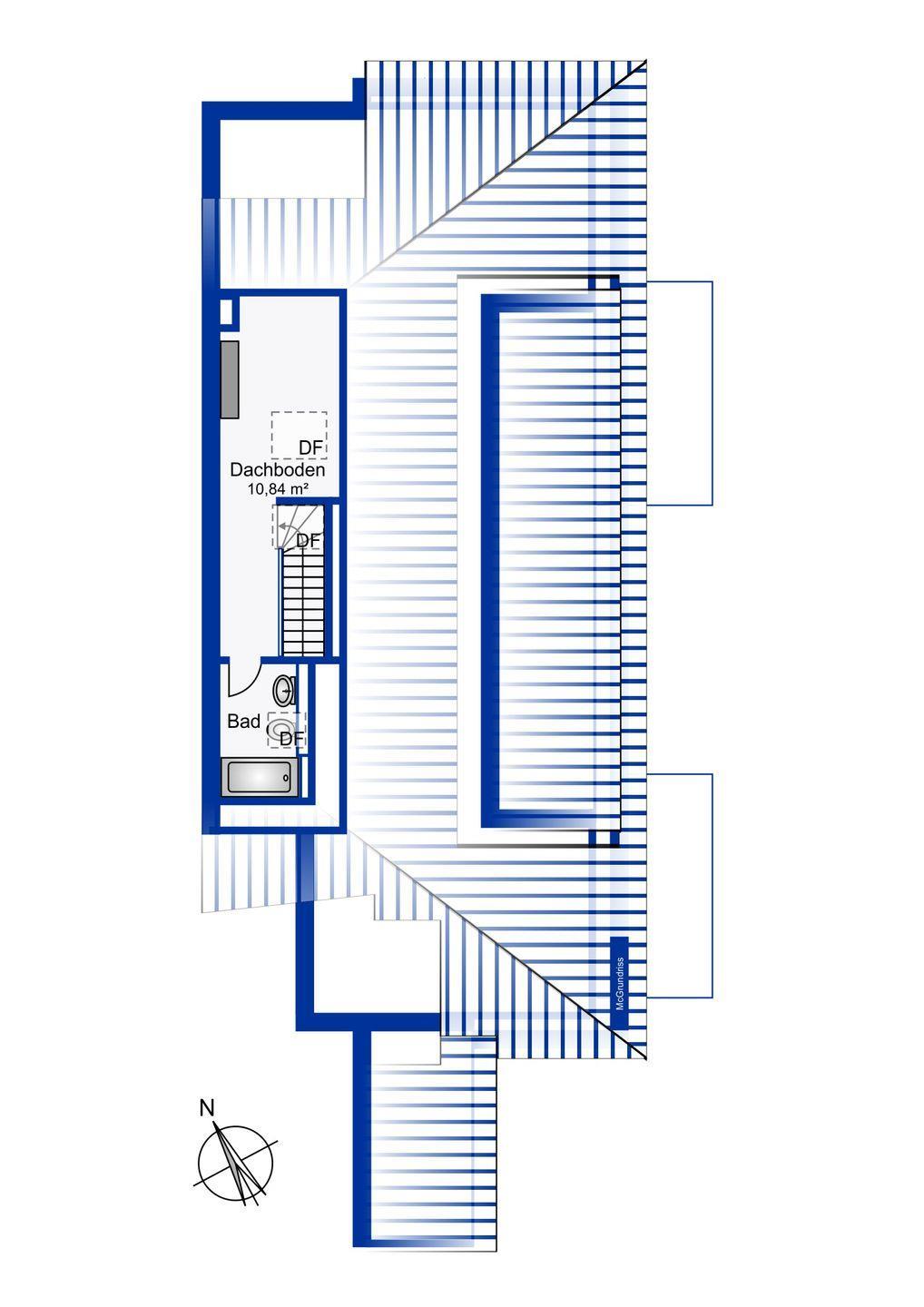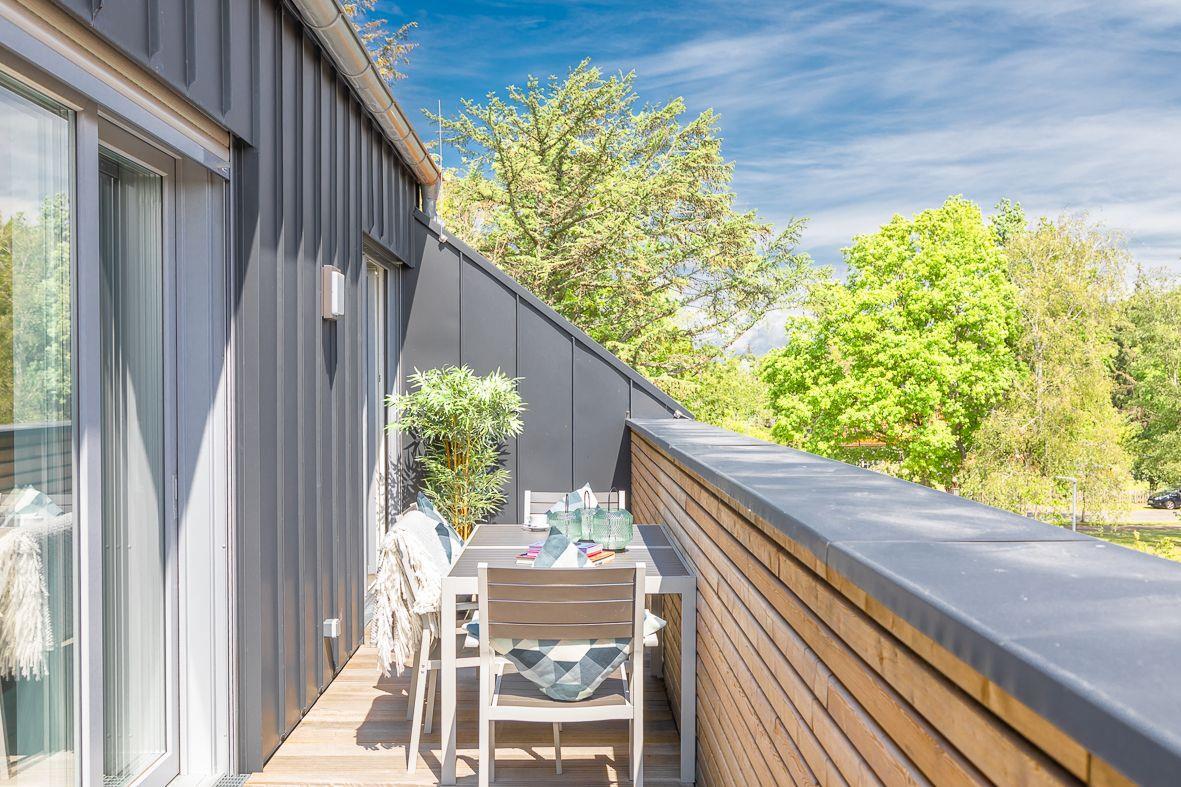 Ein Highlight der Ferienwohnung ist die Dachterrasse, die sowohl vom Wohnzimmer als auch von den beiden Schlafzimmern begehbar ist. Ein Badezimmer ist hell gestaltet und mit einer ebenerdigen Dusche ausgestattet. Die beiden Schlafzimmer mit je einem Doppelbett (180*200) befinden sich ebenfalls im 2. Obergeschoss. Über die Treppe gelangen Sie zu einem weiteren Highlight der Ferienwohnung: Das zweite Badezimmer, das über eine Badewanne und Tageslicht verfügt. Zusätzlich gibt es in diesem offenen Dachbodenbereich ein Tandembett, das zu einer Liegefläche mit 160*200cm erweitert werden kann