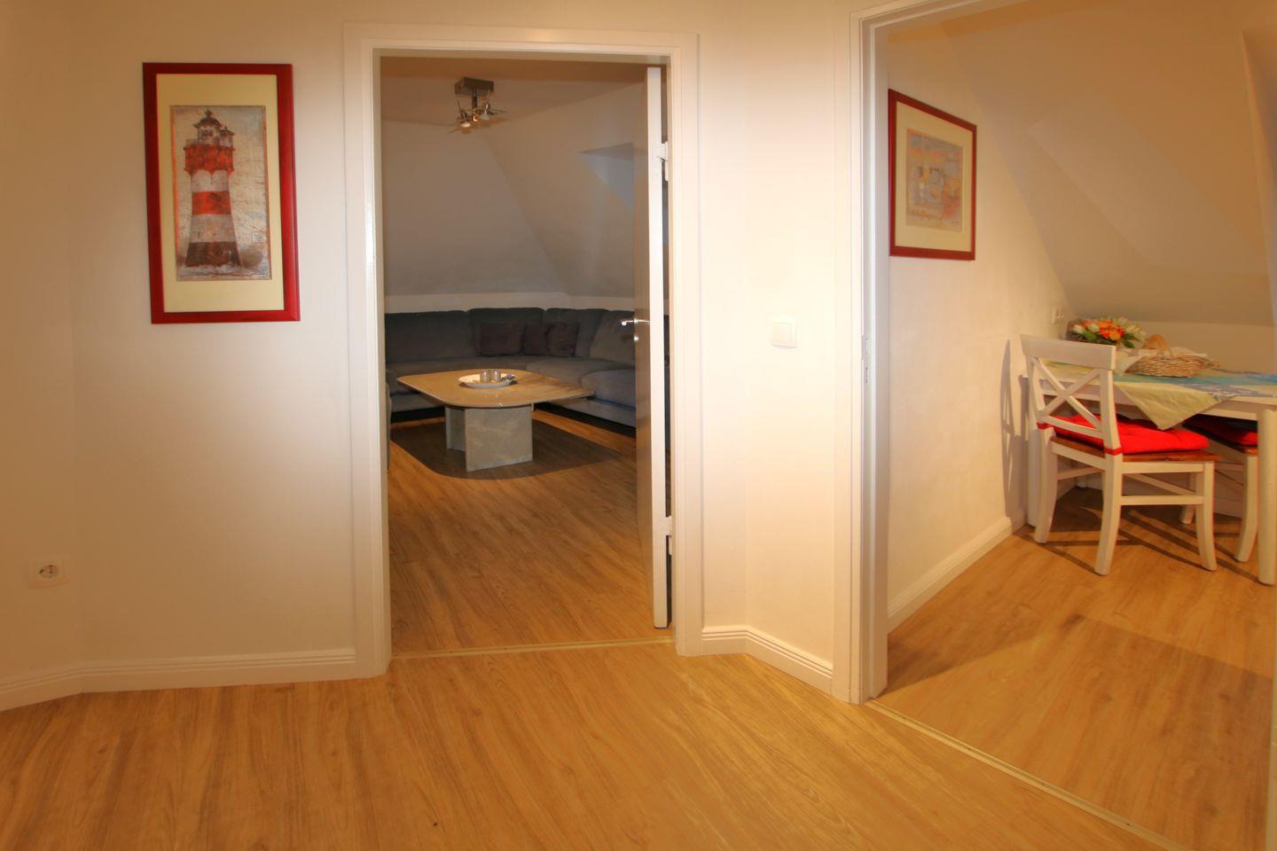 Ferienwohnung in Wyk auf Föhr, Mittelstraße 18, Wohnung Nr. 1, NICHTRAUCHER, ca. 70 qm in der 2. Etage. Große und helle 3-Zimmerwohnung in der Fußgängerzone über einem Buchladen.