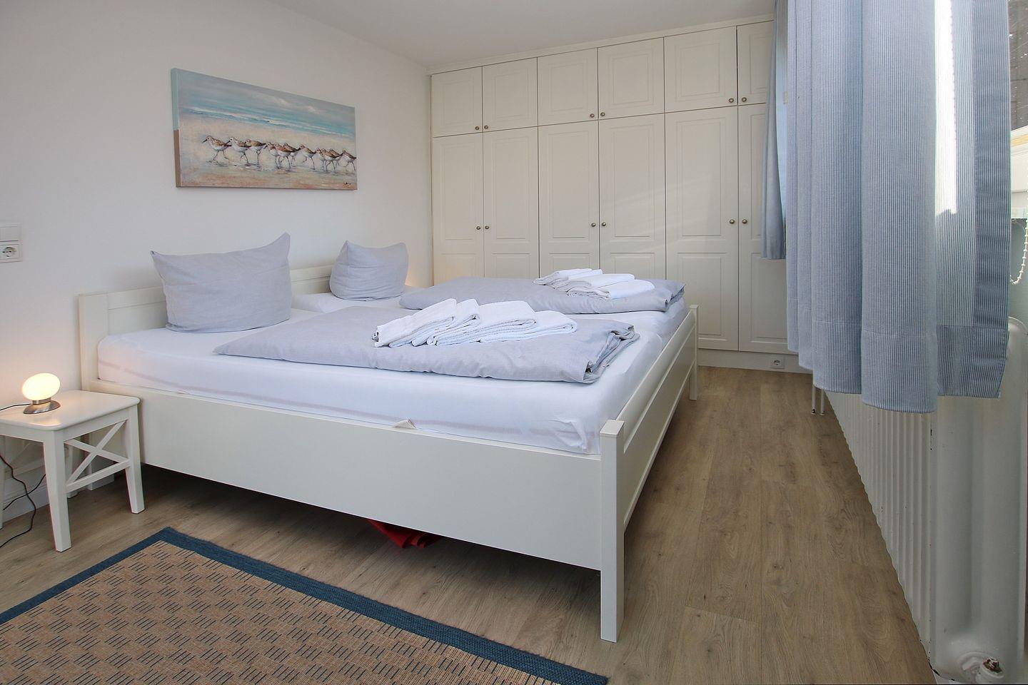 - Schlafzimmer mit Doppelbett (180 x 200cm) und Kleiderschrank