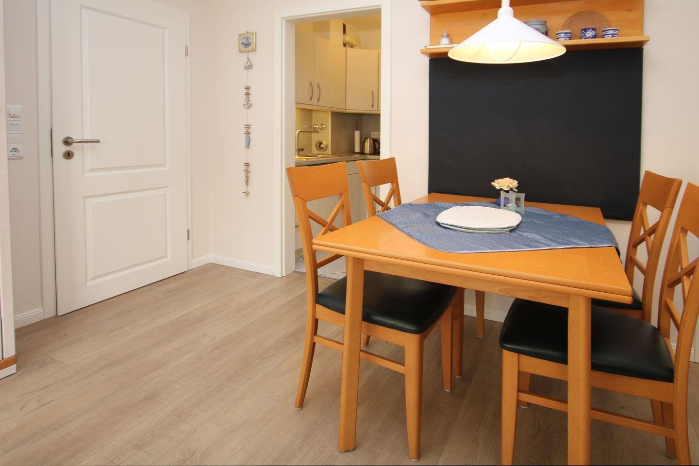 3-Zimmer-Nichtraucherwohnung im 1. OG mit großem überdachten Südbalkon. WOHNZIMMER mit Ledersitzgarnitur (Schlafcouch), Couchtisch und Esstisch mit 4 Stühlen. Separate KÜCHE mit allem Komfort. FLUR mit Garderobe. SCHLAFZIMMER mit Doppelbett und Kleiderschrank. Kl. KINDERZIMMER mit Etagenbett und Kleiderschrank und TV. BAD: Dusche, WC und Waschbecken. Kleiner Abstellraum. Im KELLER stehen Ihnen Münzwaschmaschine, -Trockner und Fahrradabstellraum zur Verfügung. Zum Strand sind es nur wenige Schritte. Einkaufsmöglichkeiten haben Sie in unmittelbarer Nähe. Zum Zentrum, Wellenbad und Kurmittelhaus sind es ca. 15 - 20 Gehminuten. Kaufmann, Bäcker und Fleischer i.d.Straße. Die Wohnung ist modern, hell und freundlich eingerichtet und 2015 renoviert. Alle Räume (außer das Bad) sind mit Design Acryl ausgelegt.