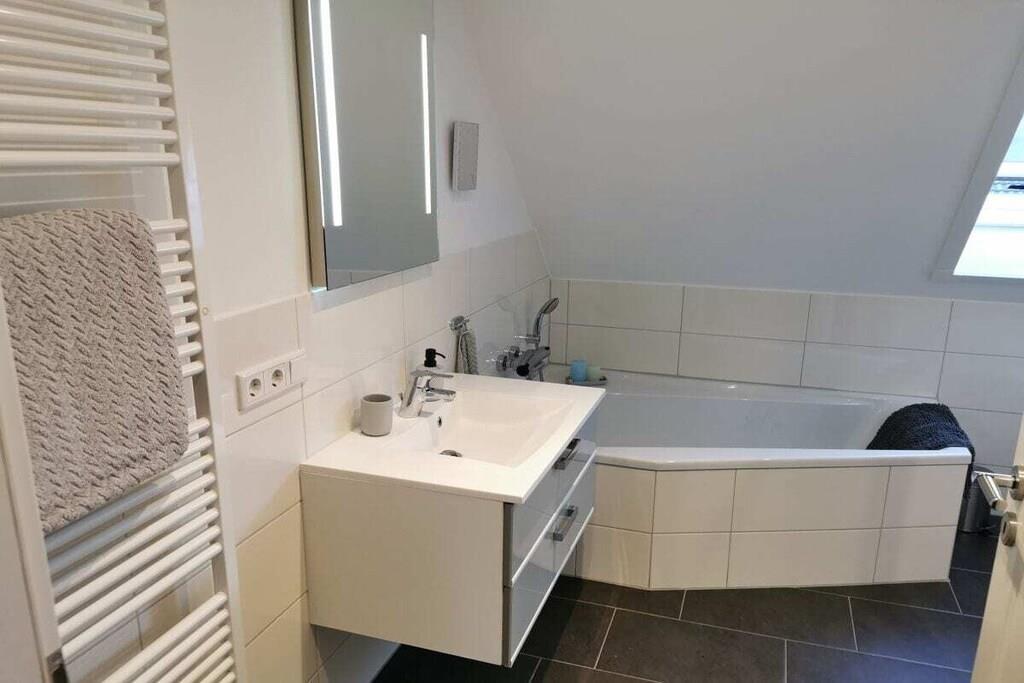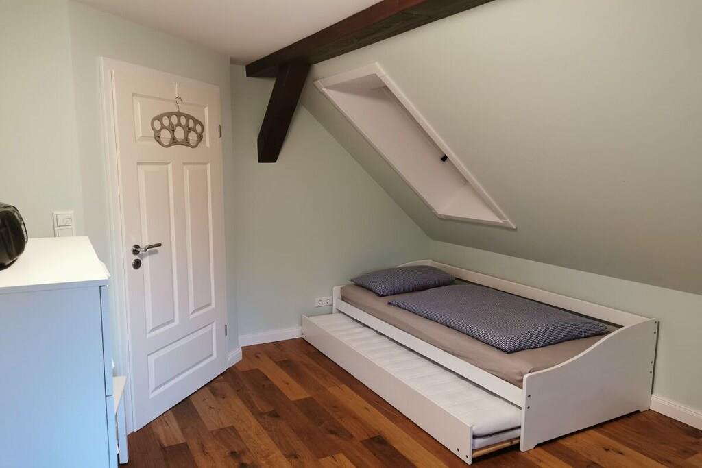 Die Ferienwohnung bietet für bis zu fünf Personen genügend Platz, um einen entspannten Urlaub zu genießen. Der helle und offene Wohn-und Küchenbereich mit integrierten Esszimmer geben Ihnen ein besonders freies Wohngefühl. In der Küche finden Sie alle wichtigen Kochutensilien und Kleingeräte um Ihren Kochkünsten freien Lauf zu lassen. Das Schlafzimmer ist mit einem großen Doppelbett eingerichtet. Der Frisiertisch und der 3-türige Kleiderschrank lassen auch hier keine Wünsche offen. Machen Sie es sich in dem großen Korbsessel gemütlich und lesen eines der zahlreichen vorhandenen Bücher. Das Kinderzimmer ist mit 2 einzeln stehenden Betten eingerichtet. Eines davon ist ein Tandem-Bett und bietet Platz für eine 3. Person. Dank des vorhandenen Kinderspielzeugs, ist für Beschäftigung gesorgt. Das Badezimmer ist mit Spiegel, WC, Dusche und Badewanne ausgestattet. Im separaten WC befinden sich Spiegel und Waschbecken