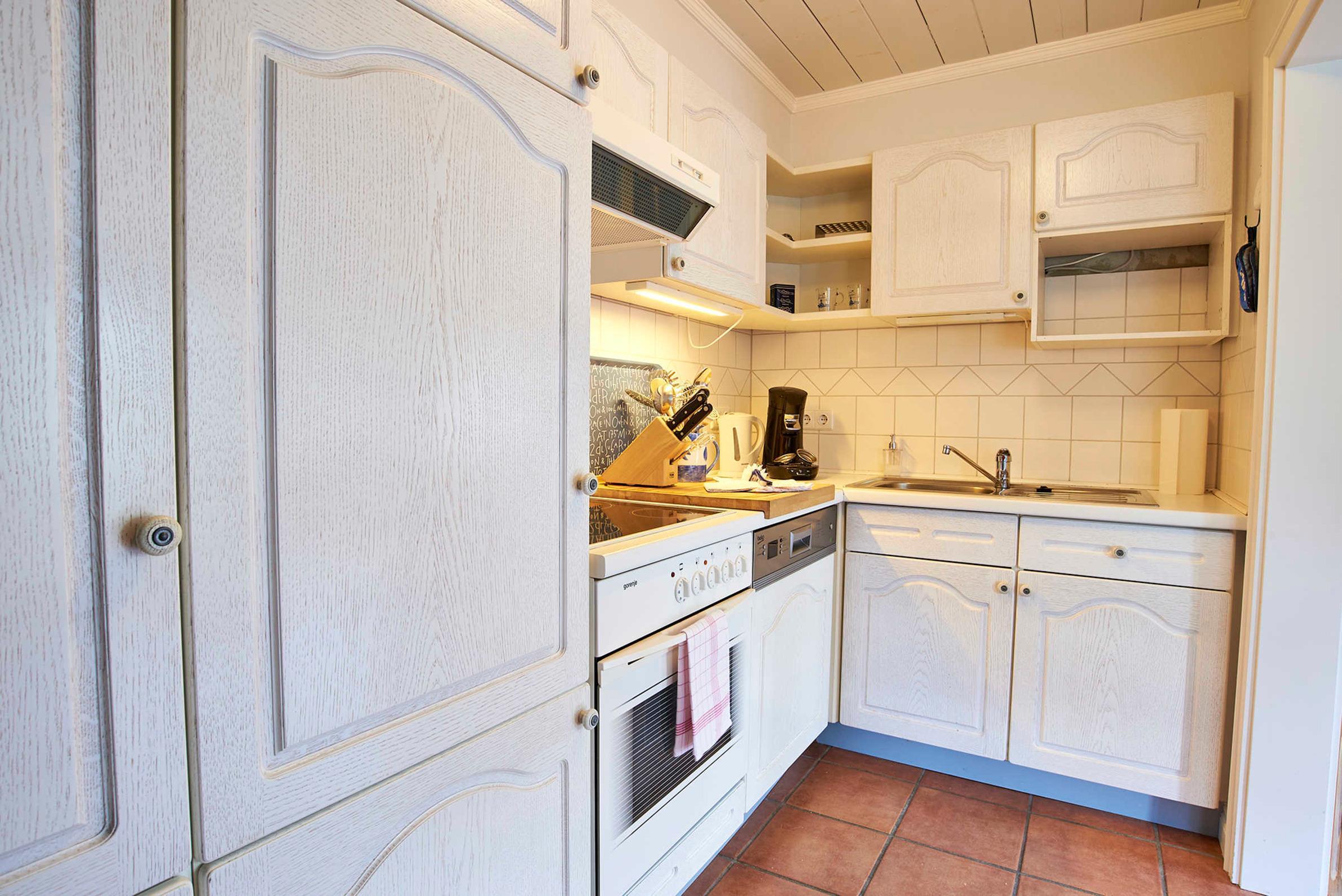Im Erdgeschoss befindet sich ein gemütlicher Wohn-Essbereich mit angrenzender halboffener Küche, welche komplett ausgestattet ist. Sat TV und DVD sowie ein W-Lan und Festnetz Telefonanschluss ist vorhanden.