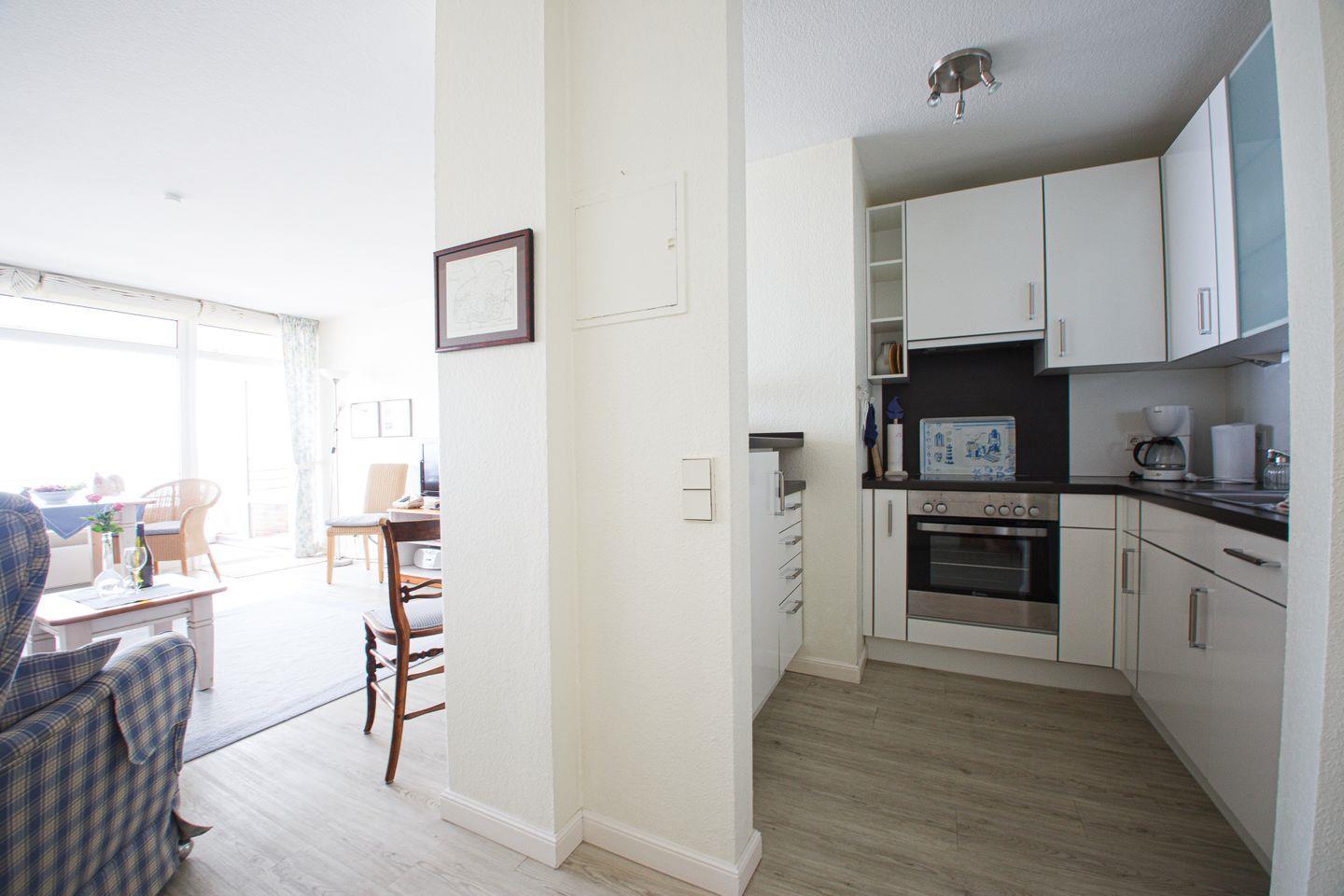 Die voll ausgestattete Küche ermöglicht es Ihnen, Ihre Lieblingsgerichte zuzubereiten, während Sie den Blick auf die Wellen genießen. Der Essbereich lädt zu geselligen Mahlzeiten ein, und die große Fensterfront sorgt dafür, dass Sie das maritime Flair jederzeit spüren können.