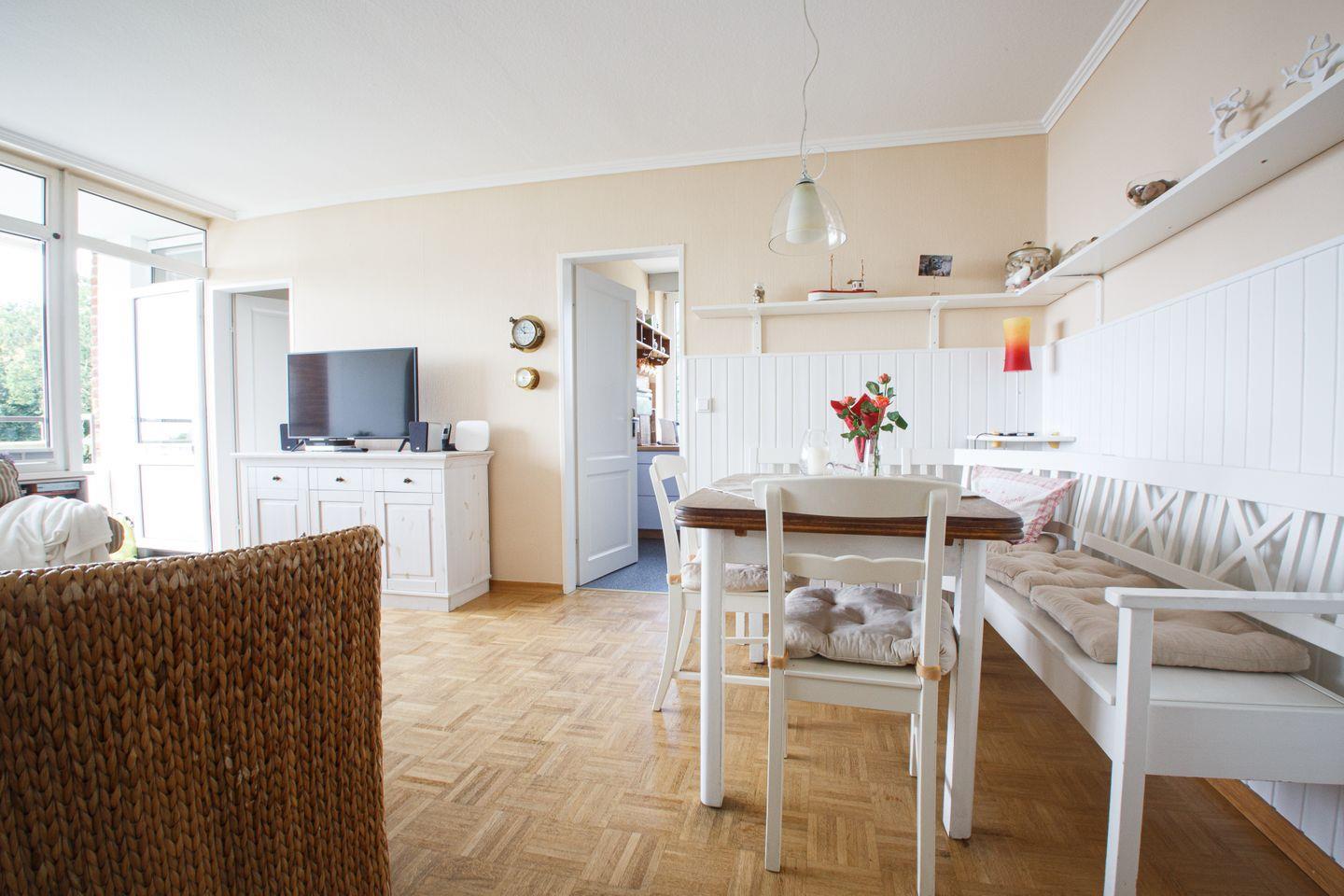 Die Wohnung Oland 11 liegt im 2. OG und verfügt über ca. 55qm, die ausreicehend Raum für 4 Personen bietet. Sie besteht aus einem Wohnraum, zwei Schlafräumen, einer Küche, einem Duschbad mit WC und einem Flur. Der Balkon in Südlage bietet einen schönen Blick auf die Nordsee. Die Wohn- und Schlafräume sind mit Laminat ausgelegt, die Küche und das Bad sind gefliest. Die Wohnung ist hell und freundlich eingerichtet. Geschmackvolle Bilder und Vorhänge geben eine gemütliche Atmosphäre. Bei dieser Wohnung haben Sie die Gelegenheit der Schwimmbadbenutzung im Nachbarhaus Uthlande.