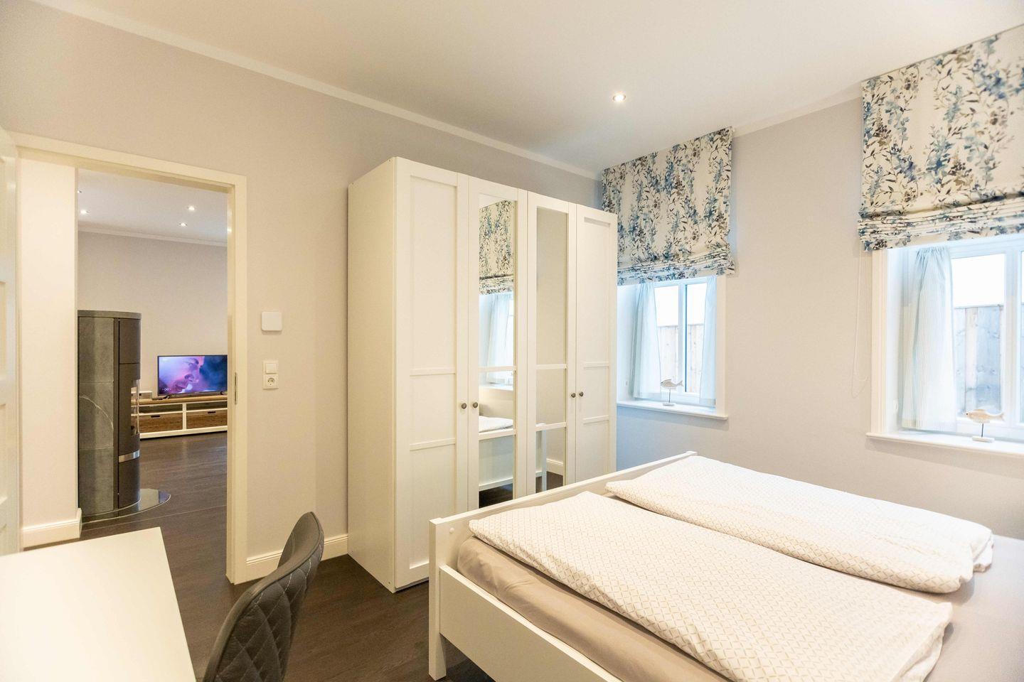 Die großzügigen Schlafzimmer sind jeweils mit einem Doppelbett (180x200), einem geräumigen Kleiderschrank und einer Sitzgelegenheit ausgestattet.