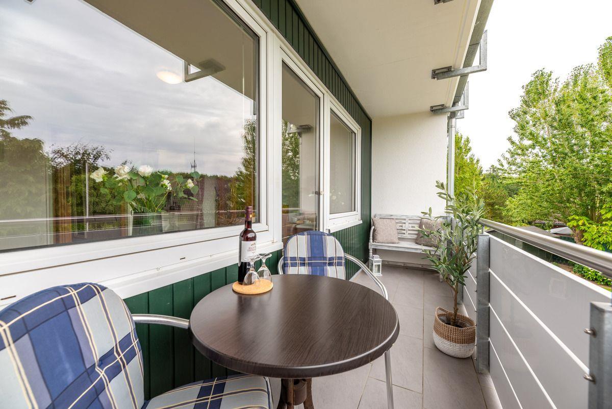 Gemütliche Ferienwohnung mit separatem Schlafzimmer, Duschbad und sonnigem Balkon. Ruhige Lage am Waldrand mit Parkplatz. Spielplatz, Bäcker und Restaurant in Laufnähe.