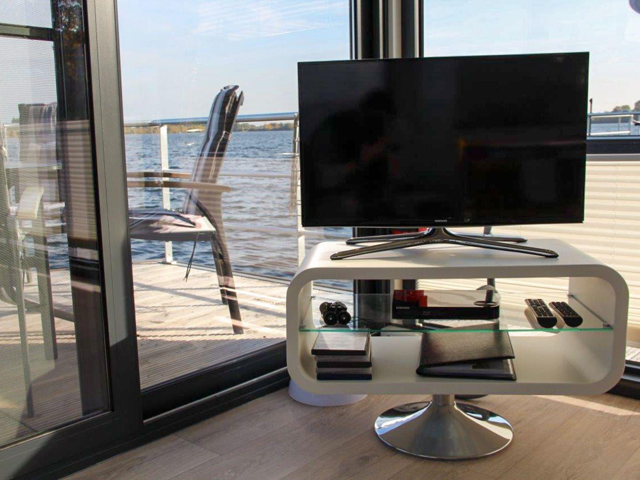 Das Floating House 5 in Xanten ist dein Rückzugsort auf dem Wasser ? fest verankert auf dem Nordsee, mitten in der herrlich grünen Seenlandschaft. Mit einer Wohnfläche von rund 44m² und zwei separaten Schlafzimmern mit gemütlichen Doppelbetten (160x200) bietet dieses moderne Hausboot Platz für bis zu vier Personen ? perfekt für Paare, Freunde oder kleine Familien, die sich nach Entschleunigung und einer frischen Brise sehnen. Die Einrichtung ist maritim-modern und stilvoll, das Raumgefühl lichtdurchflutet und offen. Durch die großzügigen Fensterfronten im Wohnbereich hast du einen weiten Blick aufs Wasser ? morgens schon beim ersten Kaffee. Für angenehme Privatsphäre und Sonnenschutz sorgen Plissees an allen Fenstern. In der klimatisierten Wohnküche findest du eine komfortable Sofaecke zum Entspannen und einen Esstisch für gemeinsame Mahlzeiten oder Spielrunden am Abend. Die Küchenzeile ist in den Wohnbereich integriert und bietet dir alles, was du brauchst: ein Ceranfeld mit zwei Kochplatten, eine Mikrowelle, Spülmaschine, Kühlschrank, Kaffeemaschine, Toaster, Wasserkocher und Spüle ? hier kannst du dir mit Leichtigkeit ein schönes Frühstück oder Abendessen zubereiten. Das Badezimmer ist clever aufgeteilt: Eine separate Dusche sorgt für Erfrischung nach einem Tag am See, und das WC mit Waschtisch ist ebenfalls separat untergebracht. Draußen erwarten dich gleich zwei Highlights: die möblierte Bugterrasse mit 15m² ? ideal für einen Sundowner mit Blick auf den See ? und die geräumige Dachterrasse mit 25m², wo du wunderbar entspannen und die Seele baumeln lassen kannst. Für deinen Komfort sorgt eine Klimaanlage mit integrierter Warmluftheizung. Außerdem stehen dir ein Flatscreen-TV mit SAT-Empfang und ein Radio zur Verfügung. Deinen Pkw parkst du ganz bequem etwa 30Meter vom Boot entfernt. Fahrräder oder Sportequipment kannst du im abgeschlossenen Lagerraum direkt am Parkplatz sicher unterbringen. Die dargestellten Fotos zeigen Beispielausstattungen ? kleinere Abweichungen sind möglich.