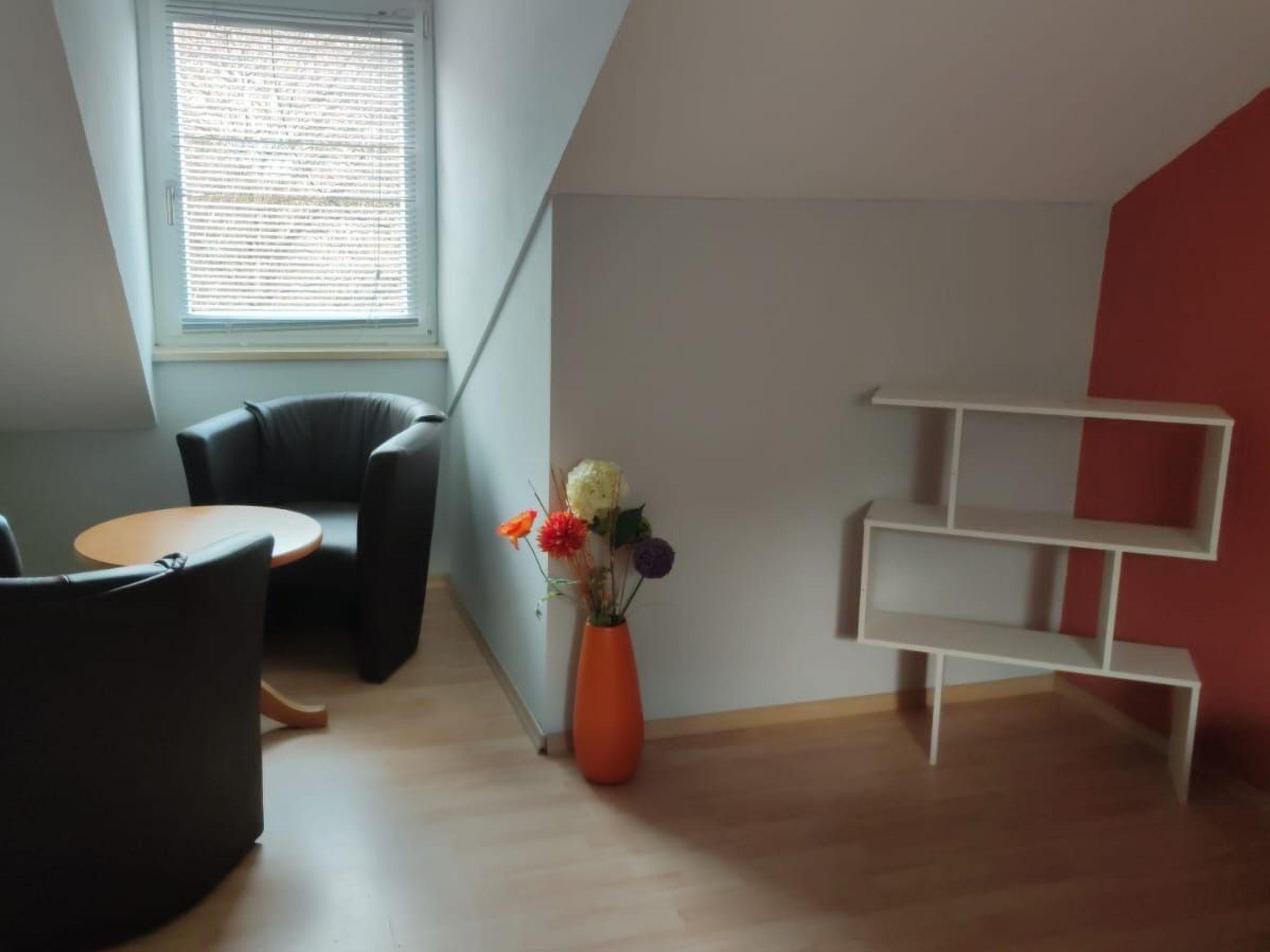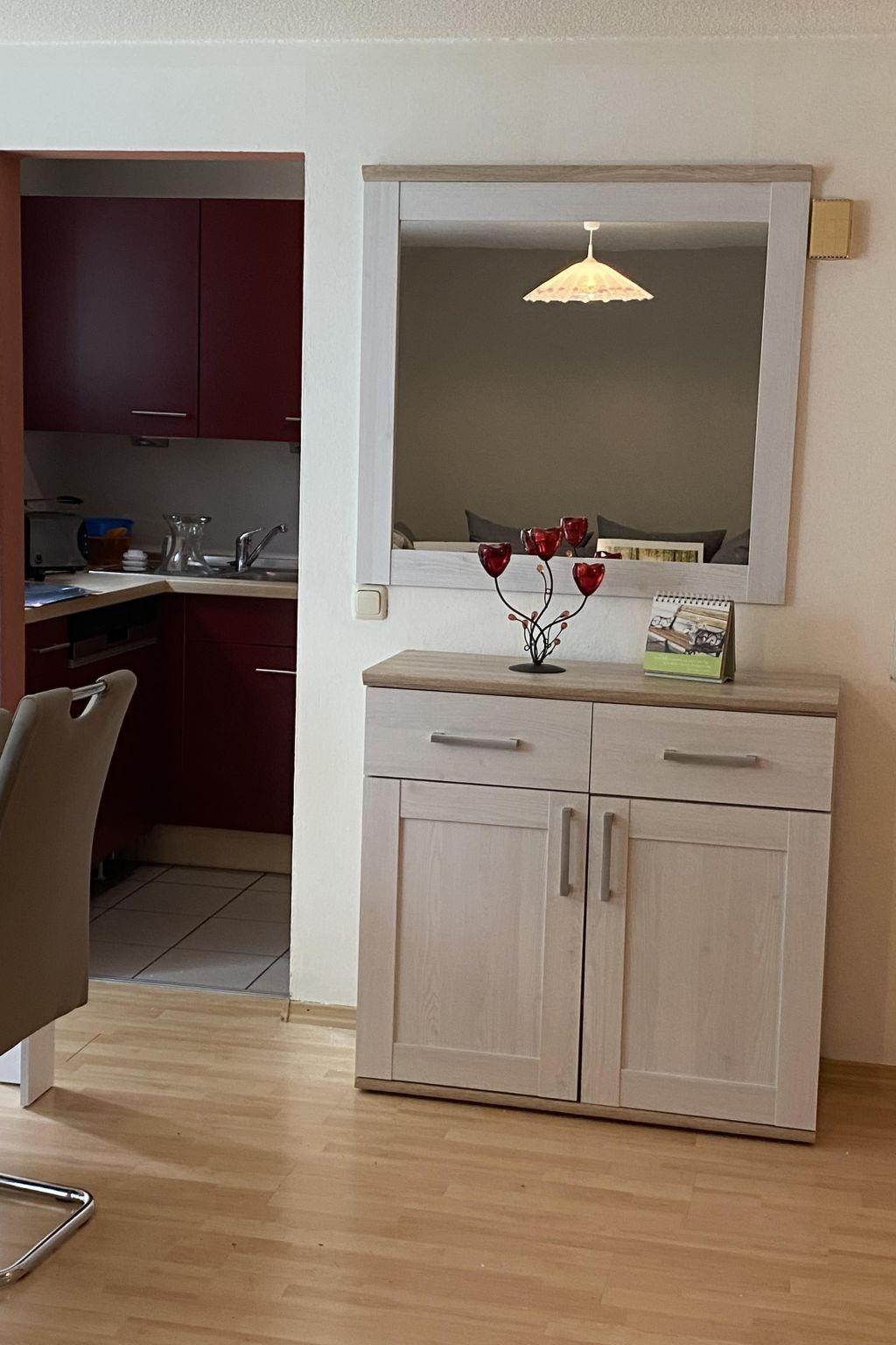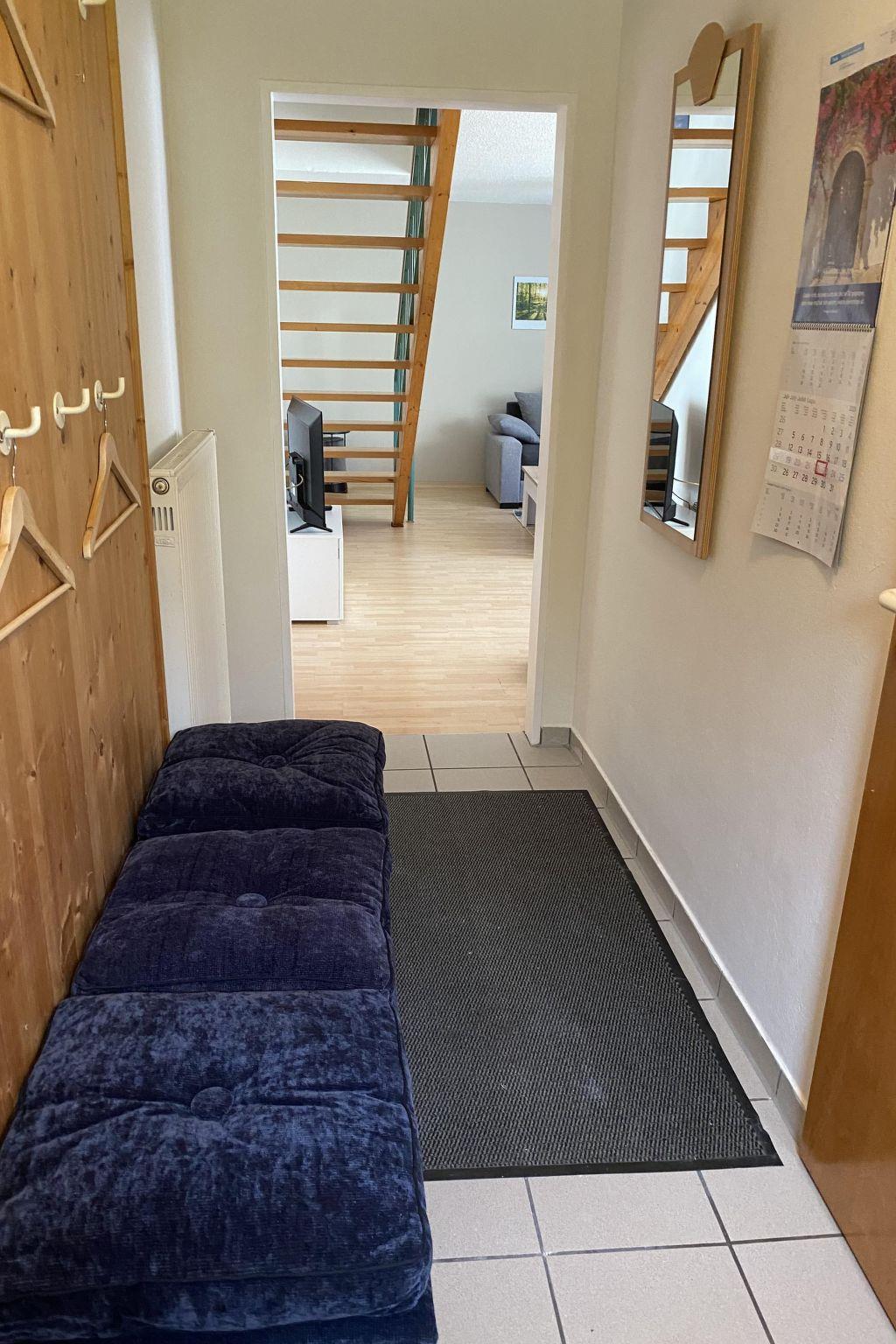 The studio holiday home, approx. 70 m² in size, consists of two separate bedrooms and a bathroom with toilet and bathtub on the first floor as well as a spacious living room on the ground floor with a dining area in the small conservatory and access to the terrace with a small garden area, from the living room there is open access to the small, fully equipped kitchen with cooker, oven, dishwasher, coffee machine and fridge. In the living area and in the bedroom there is a new flat screen TV with satellite TV and radio reception.the flat has a car parking space and free w-lan. There is an e-charging station for cars and e-bikes next to the studio holiday home.