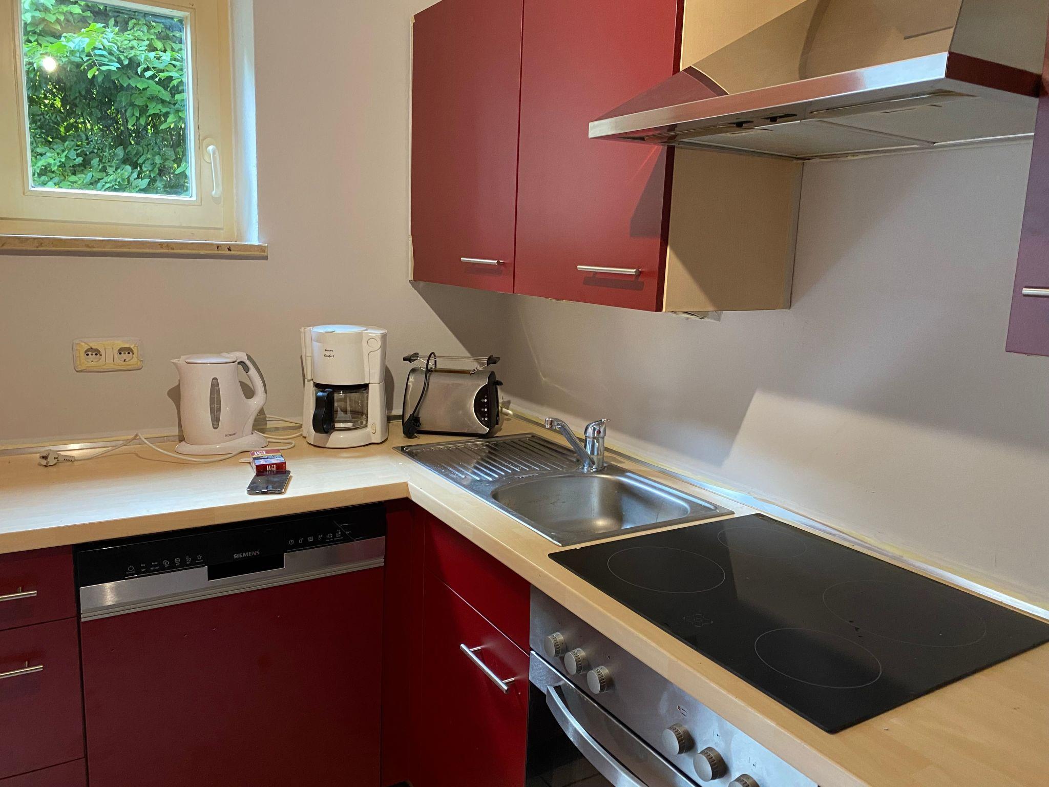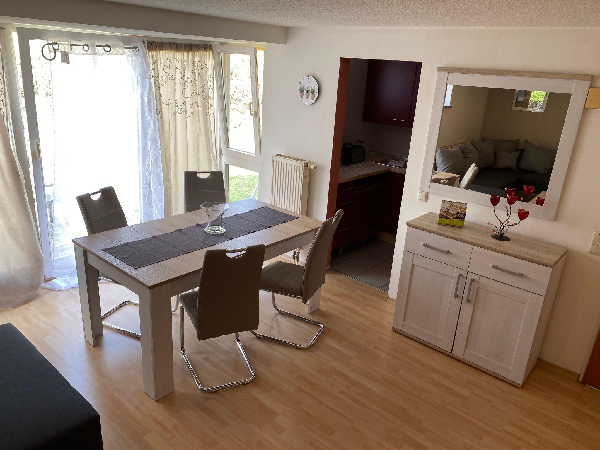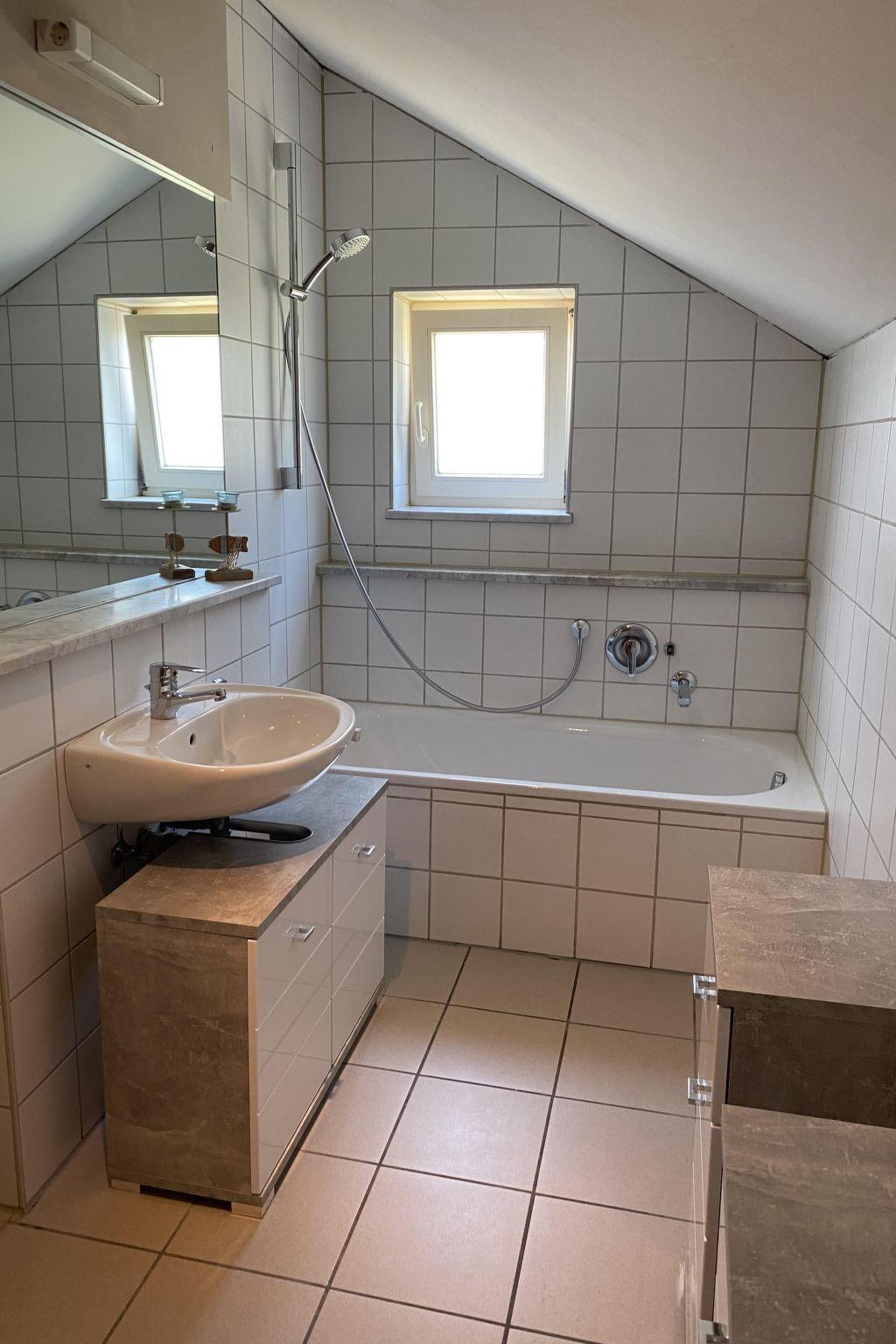The studio holiday home, approx. 70 m² in size, consists of two separate bedrooms and a bathroom with toilet and bathtub on the first floor as well as a spacious living room on the ground floor with a dining area in the small conservatory and access to the terrace with a small garden area, from the living room there is open access to the small, fully equipped kitchen with cooker, oven, dishwasher, coffee machine and fridge. In the living area and in the bedroom there is a new flat screen TV with satellite TV and radio reception.the flat has a car parking space and free w-lan. There is an e-charging station for cars and e-bikes next to the studio holiday home.