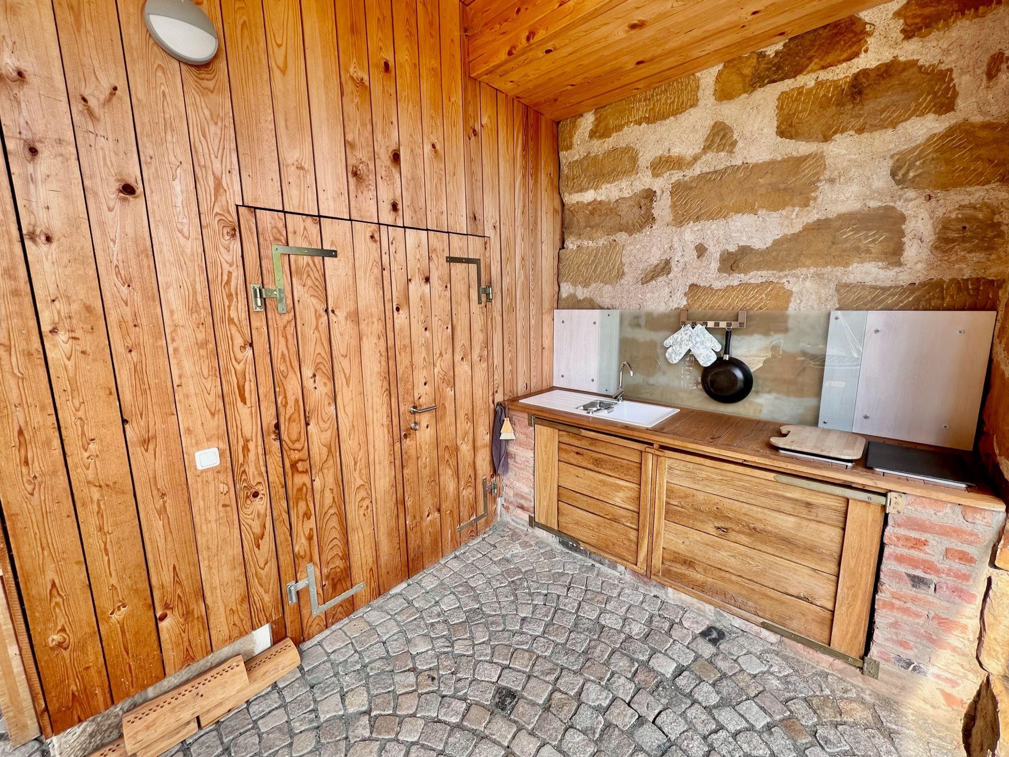 Das Denkmal geschützte Anwesen wurde in den letzten Jahren neu aufgebaut und mit Detailversessenheit liebevoll renoviert. Die Sanierungsmaßnahmen sind mit biologischen Baumaterialien unter Berücksichtigung Denkmal pflegerischer Gesichtspunkte ausgeführt worden. Dadurch wurde ein einzig artiges Raum- und Wohnklima geschaffen. Die frei gelegten Sandsteinwände und das bis in die Dachspitzen offene Gewölbe verleiht den Wohnungen die Einmaligkeit.