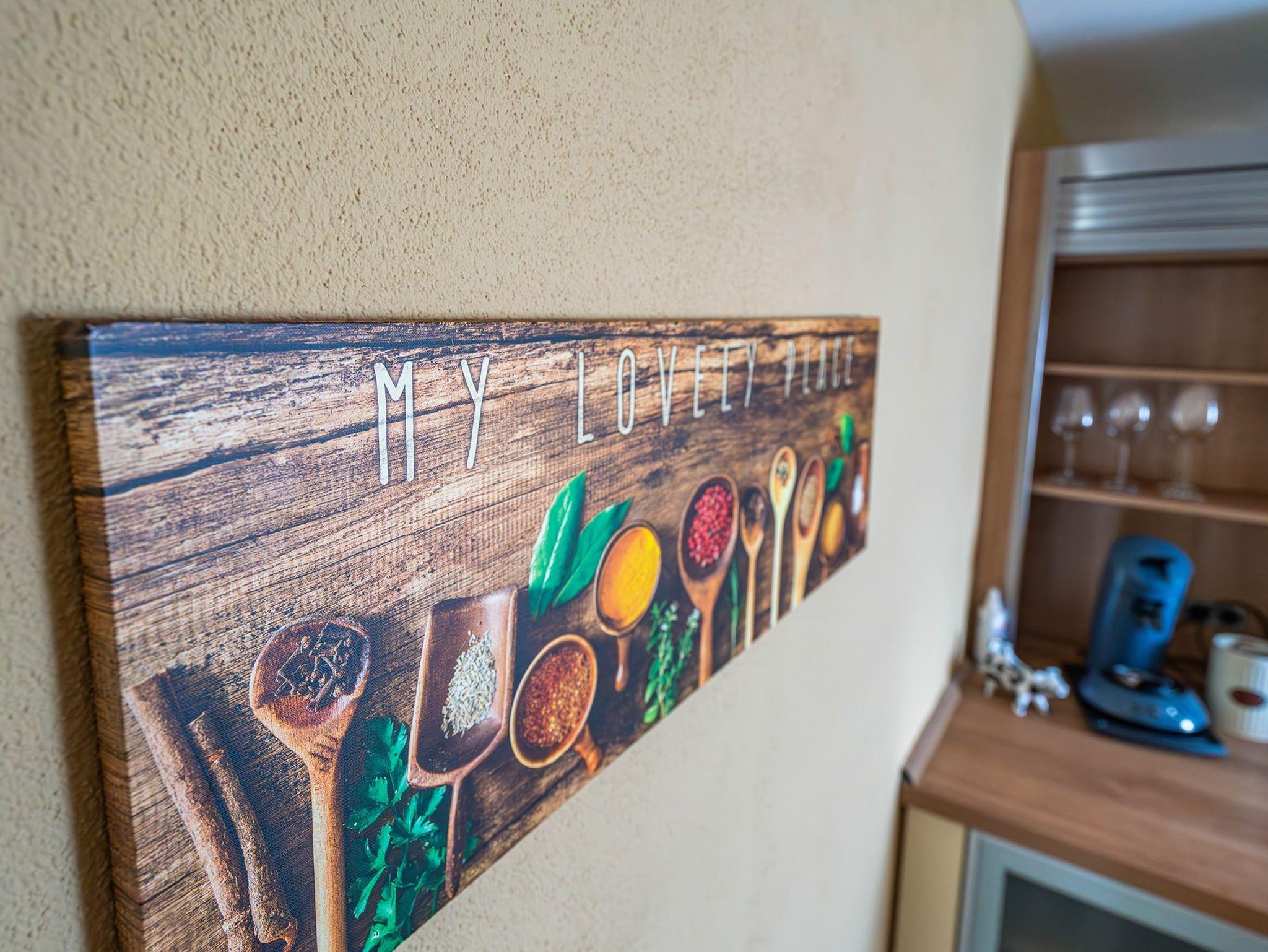 Die moderne Küche ist voll ausgestattet mit Pad- und Filterkaffeemaschine, Toaster, Geschirrspüler, Backofen, Mikrowelle, Kühlschrank mit Gefrierfach, Brotschneidemaschine, Herd, Wasserkocher und Eierkocher. Dort finden Sie auch bereits eine Grundausstattung an Zucker, Mehl, Eier, Butter, Milch, Zwiebeln, Knoblauch, Kaffeepads und frisches Obst.
