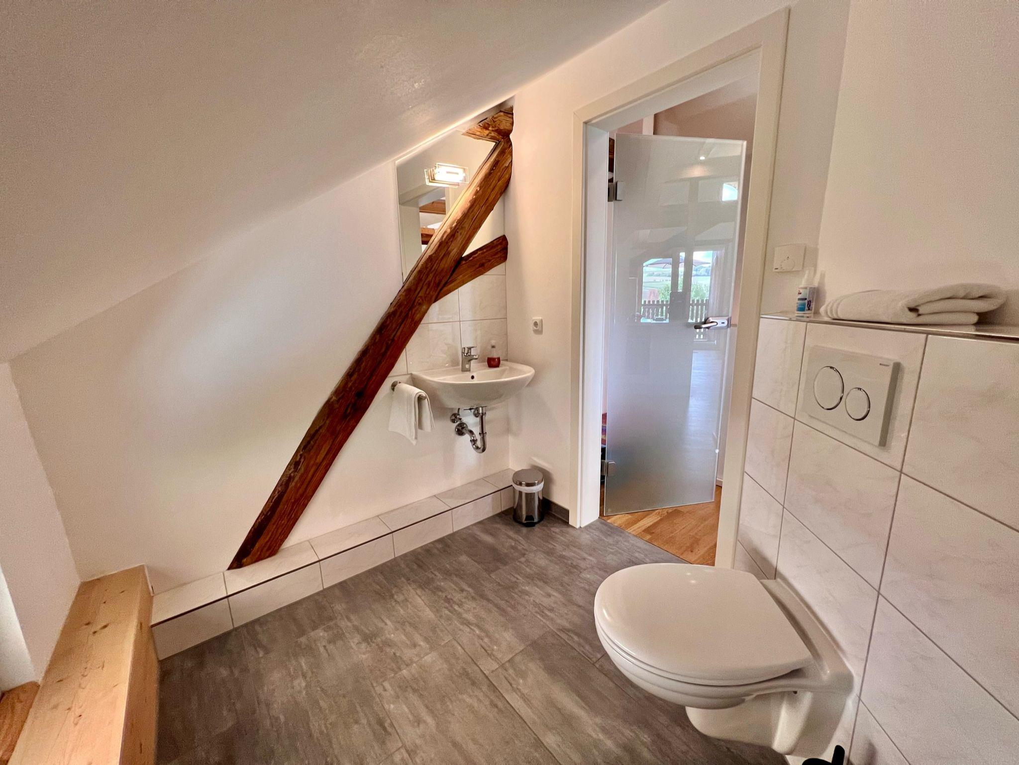 In allen Wohnbereichen entdecken sie alte Holzbalken, offen gelegtes Fachwerk, so wie frei gelegte alte Sandsteinwände. Auf Holzdielenböden stehen Vollholzmöbel in gehobener Ausfertigung.