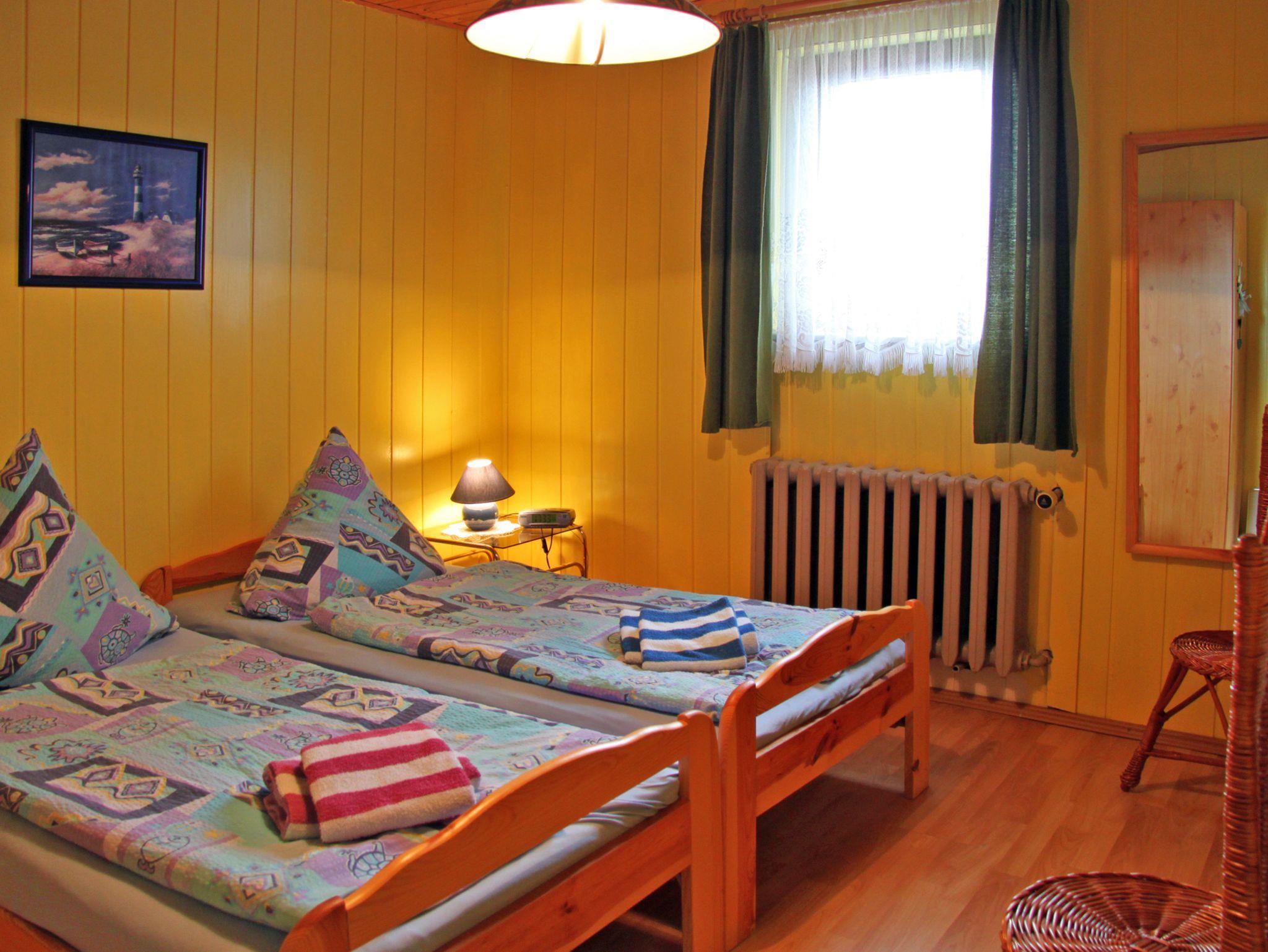 Ein Schlafzimmer ist mit einem Doppelbett (zusammengestellte Einzelbetten, 90x200) und das andere mit zwei Einzelbetten (80x190) ausgestattet. Die Ferienwohnung ist somit sehr gut geeignet für 4 Erwachsene bzw. einer Familie mit großen Kindern. Wir bitten darum nicht mit Kindern unter 4 Jahren anzureisen.