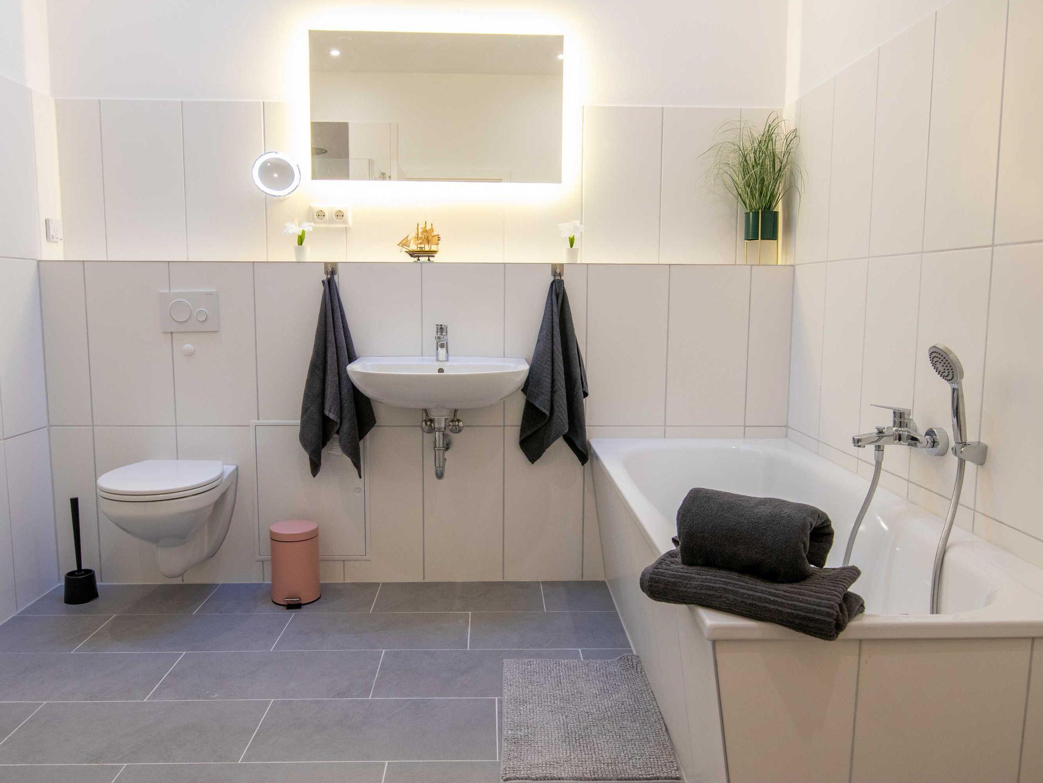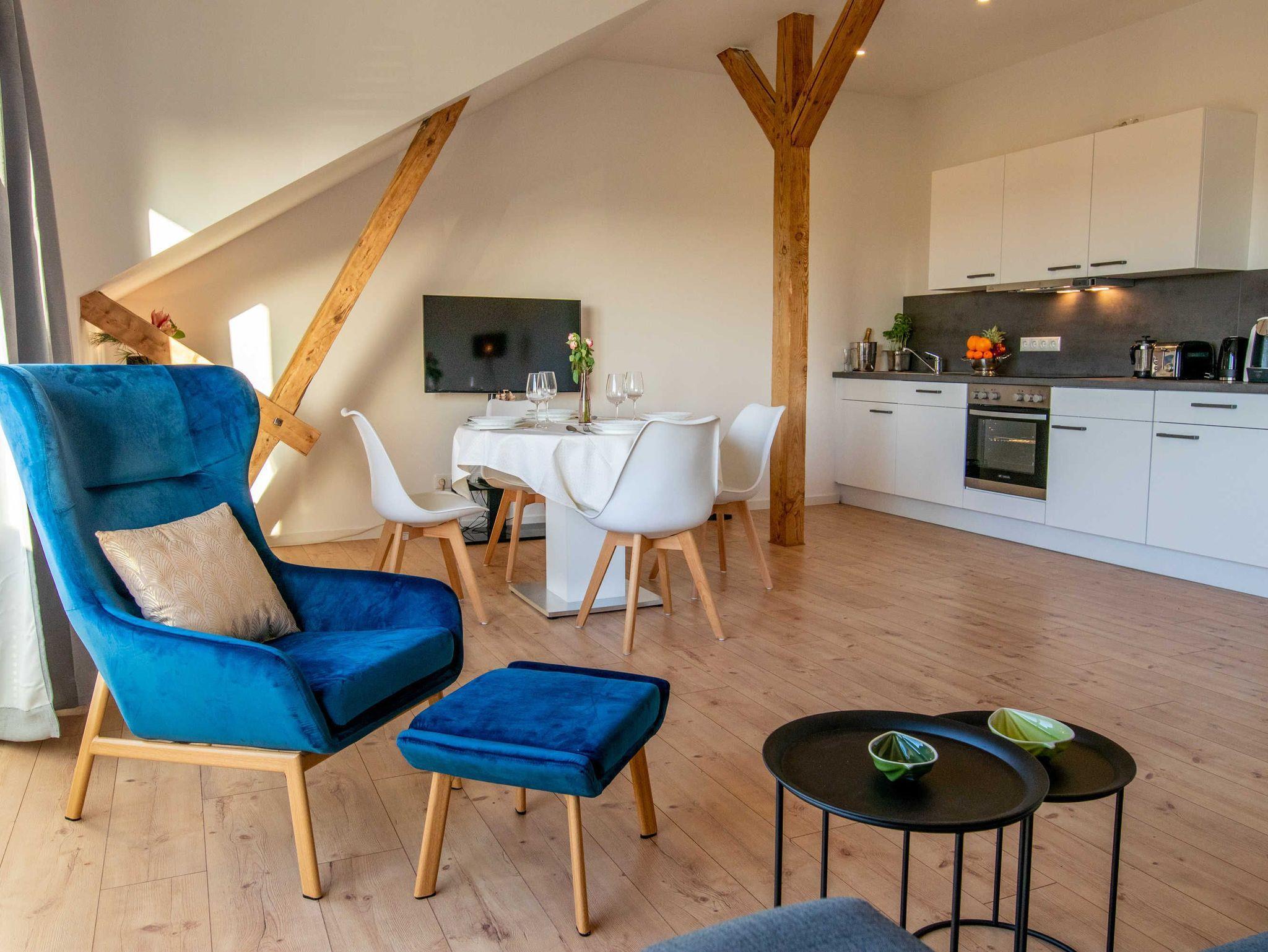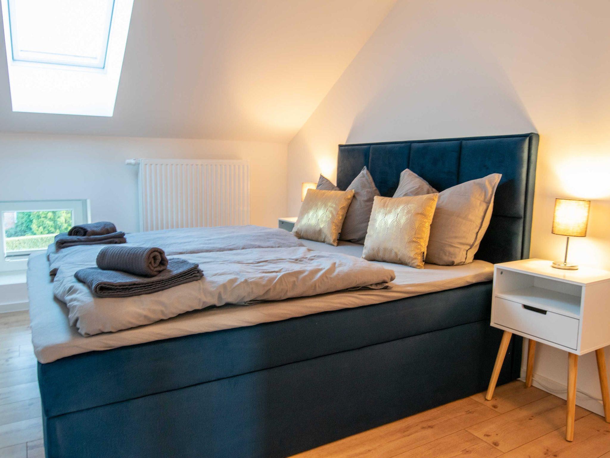 Das Landhaus Wiesenblick in Zarrendorf umfasst neben 3 Ferienwohnungen noch einen separat mietbaren Tanzsaal und eine Gaststube für eigene Feiern und Veranstaltungen. Die Ferienwohnungen Panoramablick 1 und 2 sind für jeweils 6 Personen ausgelegt und befinden sich im 1. OG und sind über einen gemeinsamen Zugang erreichbar. Die Ferienwohnung Wiesenglück für 8 Personen befindet sich im Erdgeschoss und besitzt einen separaten Eingang. Die sehr stilvoll eingerichteten Ferienwohnungen verfügen über jeweils 1 Wohnzimmer mit offener Küche und Essbereich, sowie 2 bzw. 3 getrennten Schlafzimmern. Das Badezimmer ist separat abschließbar und mit Dusche, WC und Badewanne ausgestattet. Die Küche beinhaltet eine Spüle, Geschirrspüler, Backofen, Cerankochfeld, Kühlschrank mit Gefrierfach, Wasserkocher, Toaster, Tassimo Kaffeemaschine, täglichen Küchenhelfern, Besteck und Geschirr für bis zu 6 bzw. 8 Personen. Auf dem Grundstück stehen Parkplätze und eine große Terrasse sowie Grillmöglichkeiten zur Verfügung.