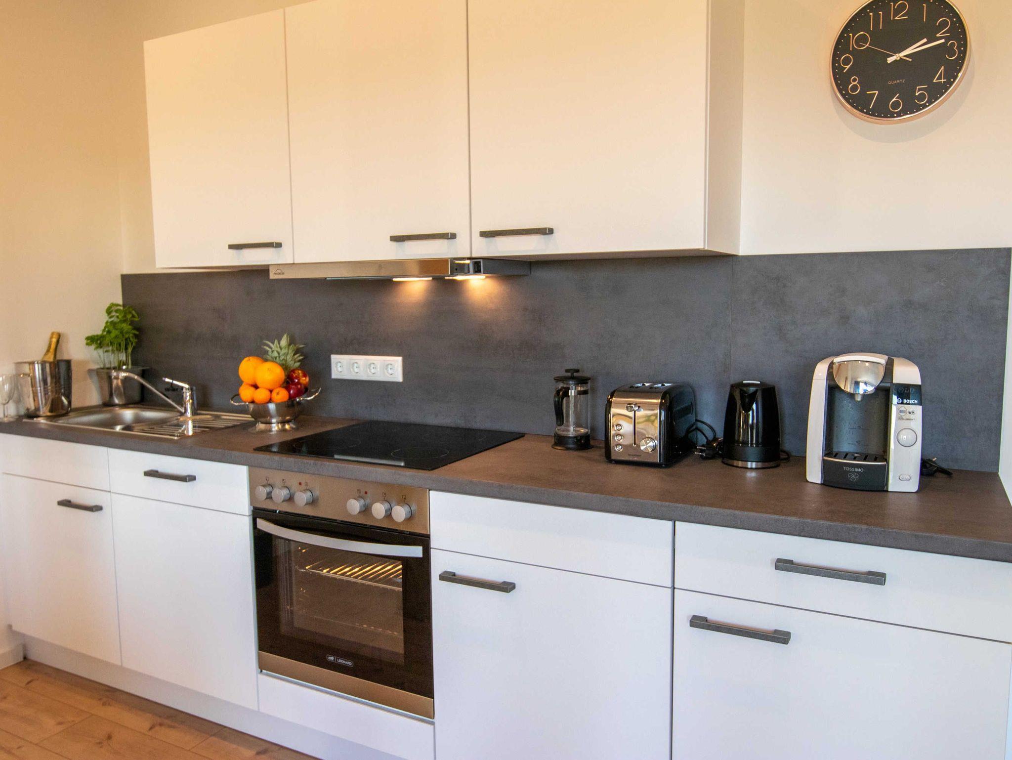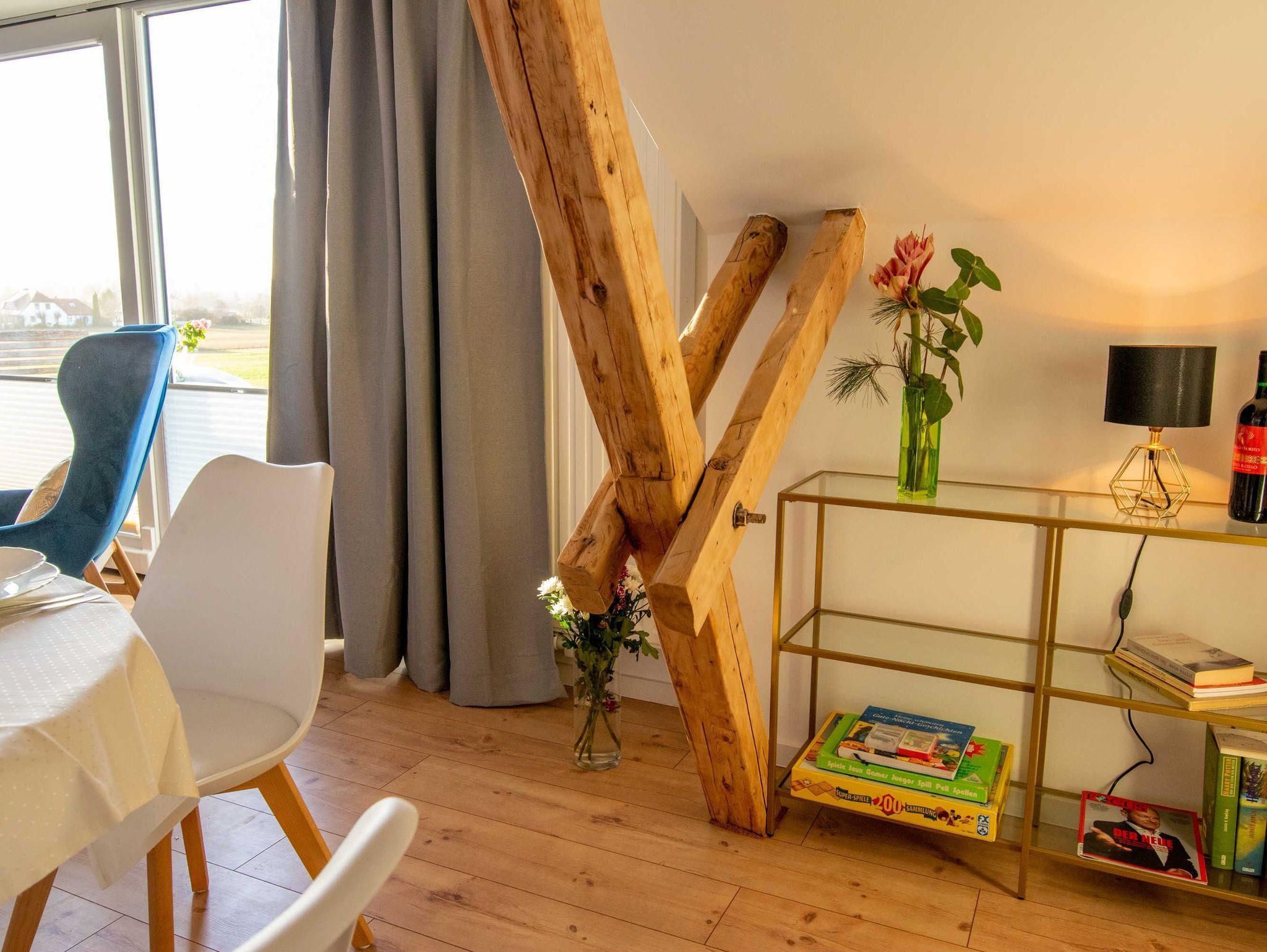 Die Ferienwohnung Panoramablick 1 im Landhaus Wiesenblick in Zarrendorf ist für bis zu 6 Personen geeignet und verfügt auf 75m² Fläche über 1 Wohnbereich mit offener Küche und Essbereich, sowie einer Schlafcouch die zu einem vollwertigen Bett (160x200) umgebaut werden kann. Die zwei separaten Schlafzimmer beinhalten jeweils ein Doppelbett (160x200) und eine Garderobe. Das Badezimmer ist abschließbar und mit einer ebenerdigen Dusche, Badewanne, Waschbecken und WC ausgestattet. Die Küche enthält neben einer Spüle, Geschirrspüler, Backofen, Cerankochfeld, Kühlschrank mit Gefrierfach, Wasserkocher, Toaster, Tassimo Kaffeemaschine auch Küchenhelfer, Besteck und Geschirr. Der Balkon kann zum Sonnen und Entspannen genutzt werden, auf der Terrasse im Erdgeschoss steht ein Grill bereit.