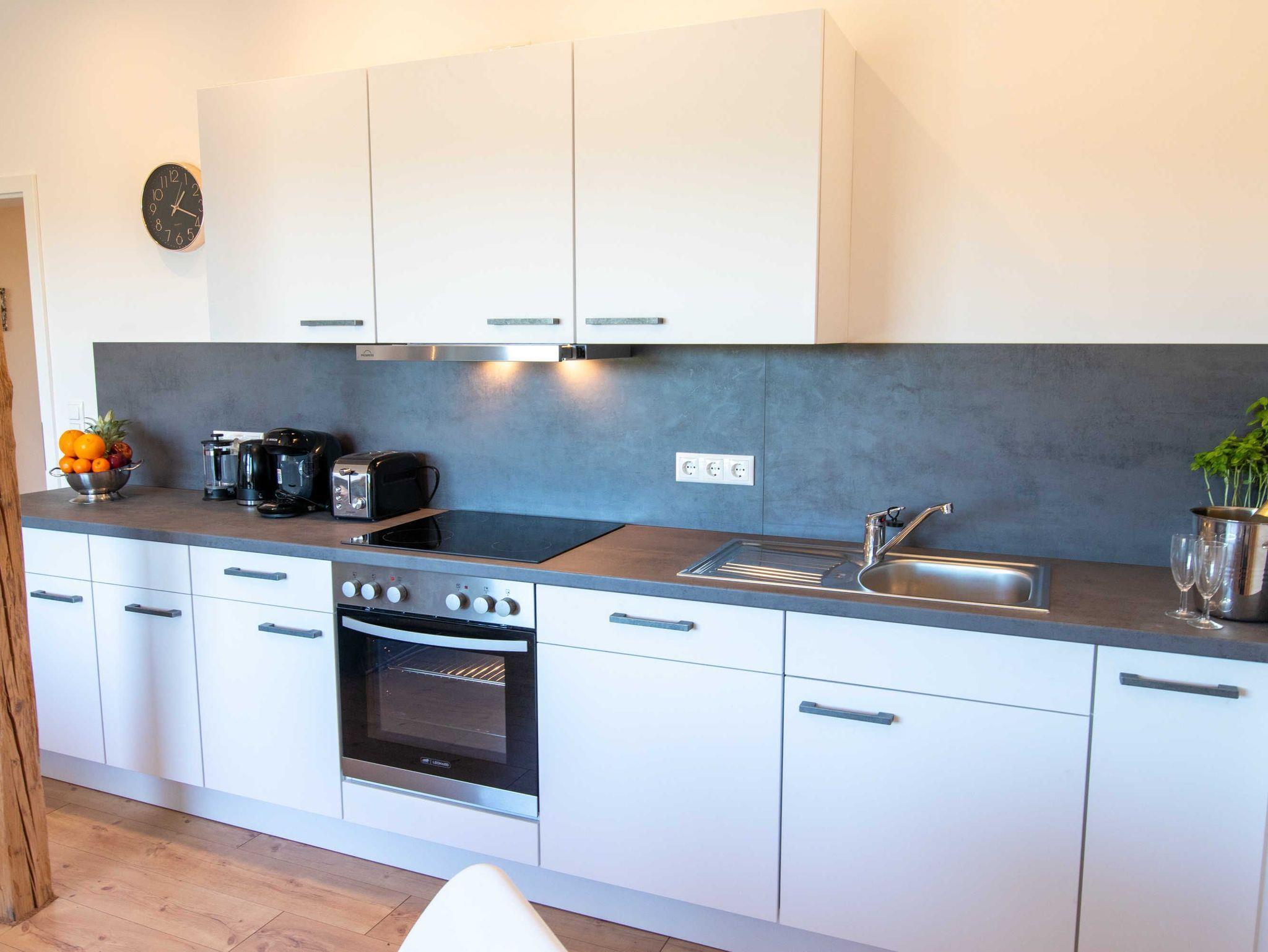 Das Landhaus Wiesenblick in Zarrendorf umfasst neben 3 Ferienwohnungen noch einen separat mietbaren Tanzsaal und eine Gaststube für eigene Feiern und Veranstaltungen. Die Ferienwohnungen Panoramablick 1 und 2 sind für jeweils 6 Personen ausgelegt und befinden sich im 1. OG und sind über einen gemeinsamen Zugang erreichbar. Die Ferienwohnung Wiesenglück für 8 Personen befindet sich im Erdgeschoss und besitzt einen separaten Eingang. Die sehr stilvoll eingerichteten Ferienwohnungen verfügen über jeweils 1 Wohnzimmer mit offener Küche und Essbereich, sowie 2 bzw. 3 getrennten Schlafzimmern. Das Badezimmer ist separat abschließbar und mit Dusche, WC und Badewanne ausgestattet. Die Küche beinhaltet eine Spüle, Geschirrspüler, Backofen, Cerankochfeld, Kühlschrank mit Gefrierfach, Wasserkocher, Toaster, Tassimo Kaffeemaschine, täglichen Küchenhelfern, Besteck und Geschirr für bis zu 6 bzw. 8 Personen. Auf dem Grundstück stehen Parkplätze und eine große Terrasse sowie Grillmöglichkeiten zur Verfügung.