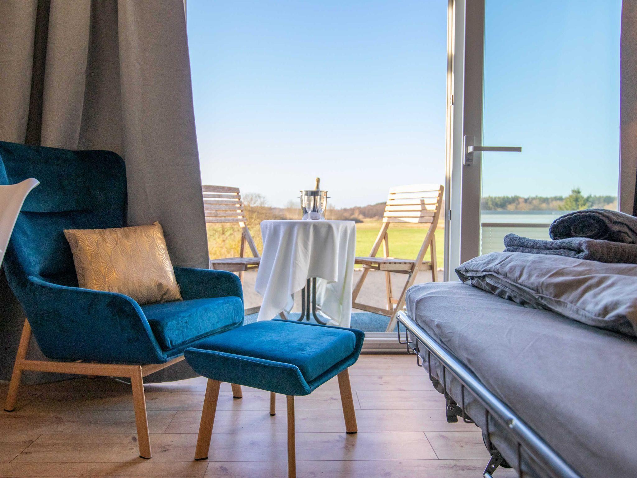 Die Ferienwohnung Panoramablick 2 im Landhaus Wiesenblick in Zarrendorf ist für bis zu 6 Personen geeignet und verfügt auf 75m² Fläche über 1 Wohnbereich mit offener Küche und Essbereich, sowie einer Schlafcouch die zu einem vollwertigen Bett (160x200) umgebaut werden kann. Die zwei separaten Schlafzimmer beinhalten jeweils ein Doppelbett (160x200) und eine Garderobe. Das Badezimmer ist abschließbar und mit einer ebenerdigen Dusche, Badewanne, Waschbecken und WC ausgestattet. Die Küche enthält neben einer Spüle, Geschirrspüler, Backofen, Cerankochfeld, Kühlschrank mit Gefrierfach, Wasserkocher, Toaster, Tassimo Kaffeemaschine auch Küchenhelfer, Besteck und Geschirr. Der Balkon kann zum Sonnen und Entspannen genutzt werden, auf der Terrasse im Erdgeschoss steht ein Grill bereit.