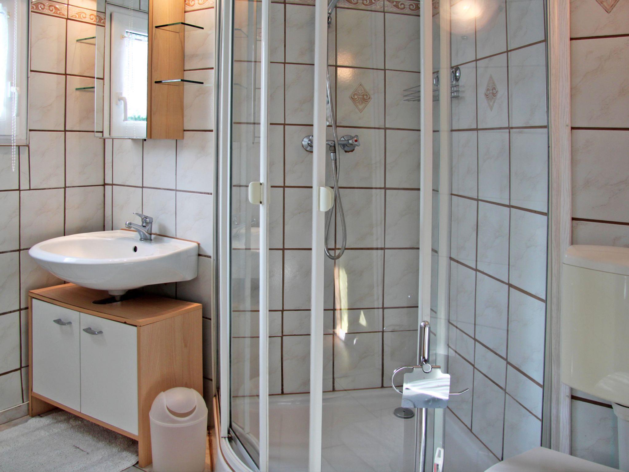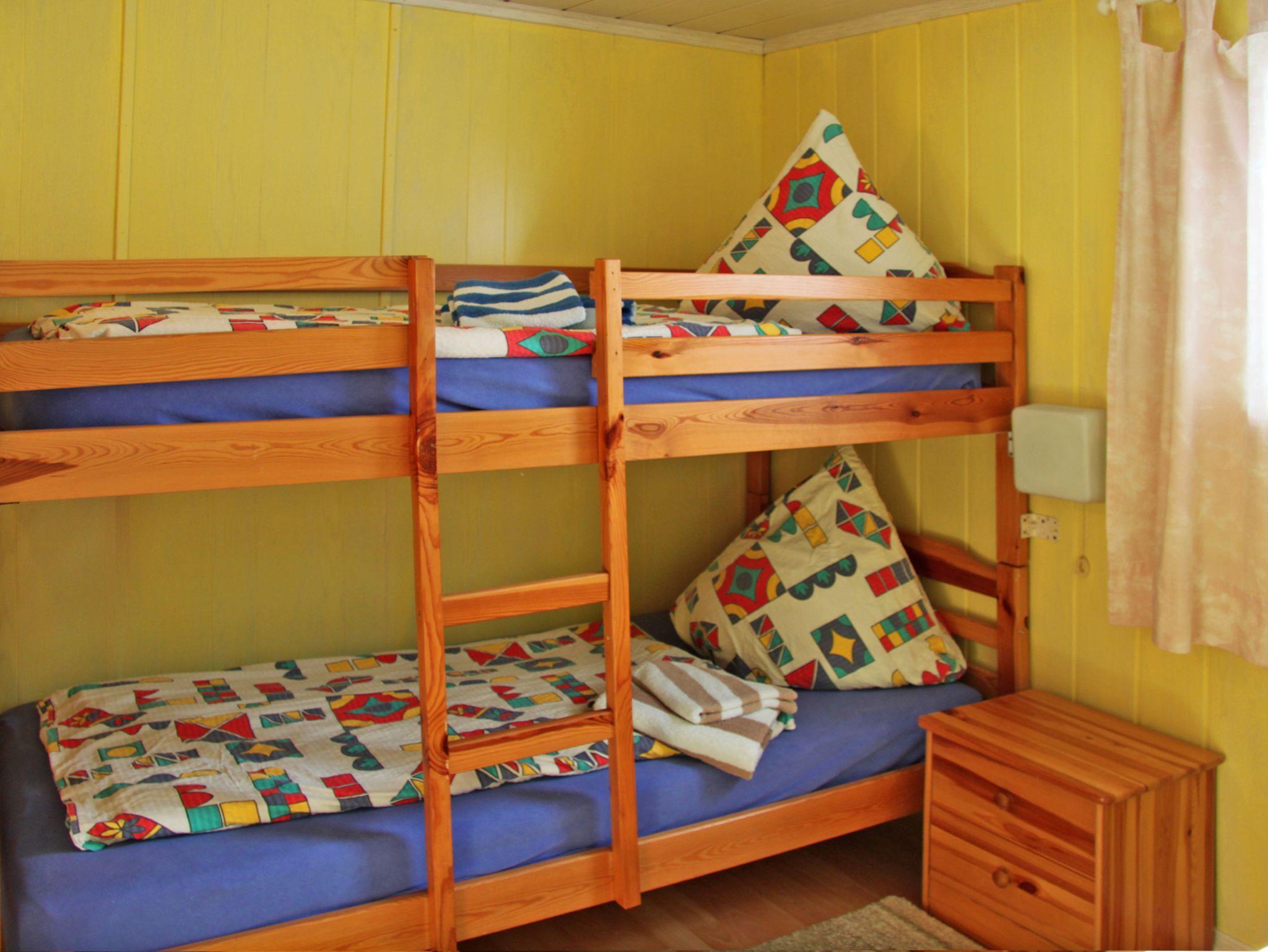 Ein Schlafzimmer ist mit einem Doppelbett (zusammen gestellte Einzelbetten, jeweils 90x200) und das andere Schlafzimmer mit einem Etagenbett (Doppelstockbett, 90x200) für Kinder und Junggebliebene ausgestattet. Über das Kinderschlafzimmer gelangt man in das Bad. Wir bitten darum nicht mit Kindern unter 4 Jahren anzureisen.