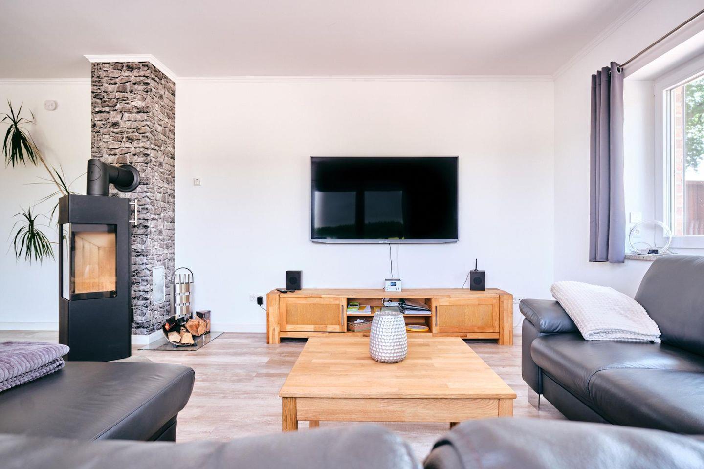 Das im Jahre 2021 im Bungalowstil erbaute, ebenerdige Ferienhaus verfügt über 1 Wohn- Esszimmer mit Kaminofen, 1 offene Wohnküche, 4 separate Schlafräume, 2 Vollbäder mit Wanne, Dusche und WC, 1 Gäste-WC, 1 Terrasse, einen ca. 1.100 m² großen, komplett eingezäunten Garten sowie ein Carport mit 3 Stellplätzen.