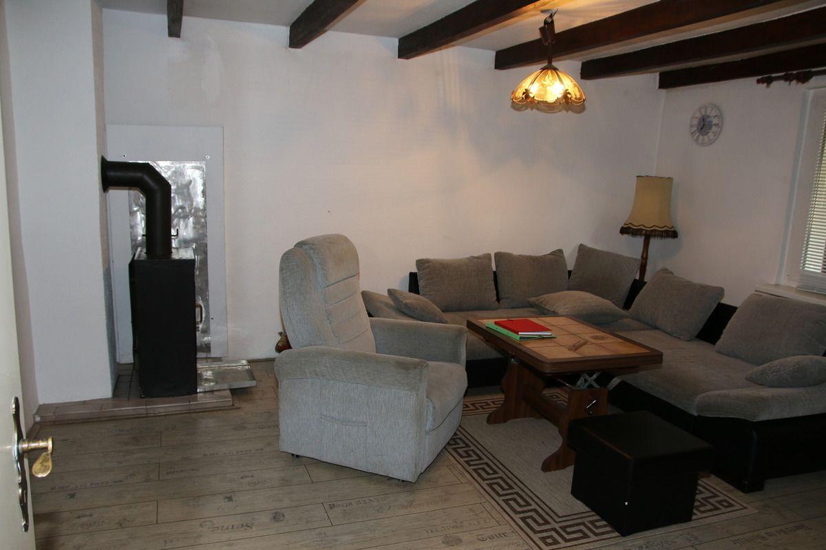 Das 55 m² große Ferienhaus betreten Sie im Flur mit Garderobe, Spiegel, Kleider- und Schuhschrank. Im Wohnzimmer gibt es eine große Couch, die auch zum Schlafen für 2 Personen geeignet ist, sowie einen Sessel, einen Wohnzimmertisch, eine Wohnwand und einen Flachbildfernseher. In der Küche finden Sie einen Vierplattenherd mit Backofen, eine Mikrowelle, einen Geschirrspüler, einen Kühlschrank mit Tiefkühlfach, eine Kaffeemaschine, einen Toaster, einen Wasserkocher und ein Radio mit CD. Hier steht auch der Esstisch mit Stühlen. Von diesem Raum gelangen Sie ins Bad mit einer großen Dusche, WC, Waschtisch, Spiegel, Waschmaschine und einem kleinen Handtuchheizkörper. Das Schlafzimmer ist mit zwei Boxsprigbetten (0,9x2,0 m und 1,4x2,0 m) für insgesamt 3 Personen ausgestattet. Direkt neben der Eingangstür befindet sich Ihre große überdachte Terrasse mit Gartenmöbeln. Hier können Sie auch gerne rauchen. Ein Holzkohle- und ein Gasgrill stehen zur Verfügung. In Absprache mit Ihren Vermietern können Sie auch einen Räucherofen sowie eine Feuerschale nutzen. Da das Haus jedoch direkt am Wald liegt ist bei großer Trockenheit eine Nutzung nicht möglich. Der kleine Gartenteich ist zur Sicherheit eingezäunt. Parkplätze sind auf dem Grundstück vorhanden, ebenso wie ein Räucherofen für Fisch, der bei den passenden Wetterbedingungen und nach Absprache mit den Vermietern, genutzt werden kann.