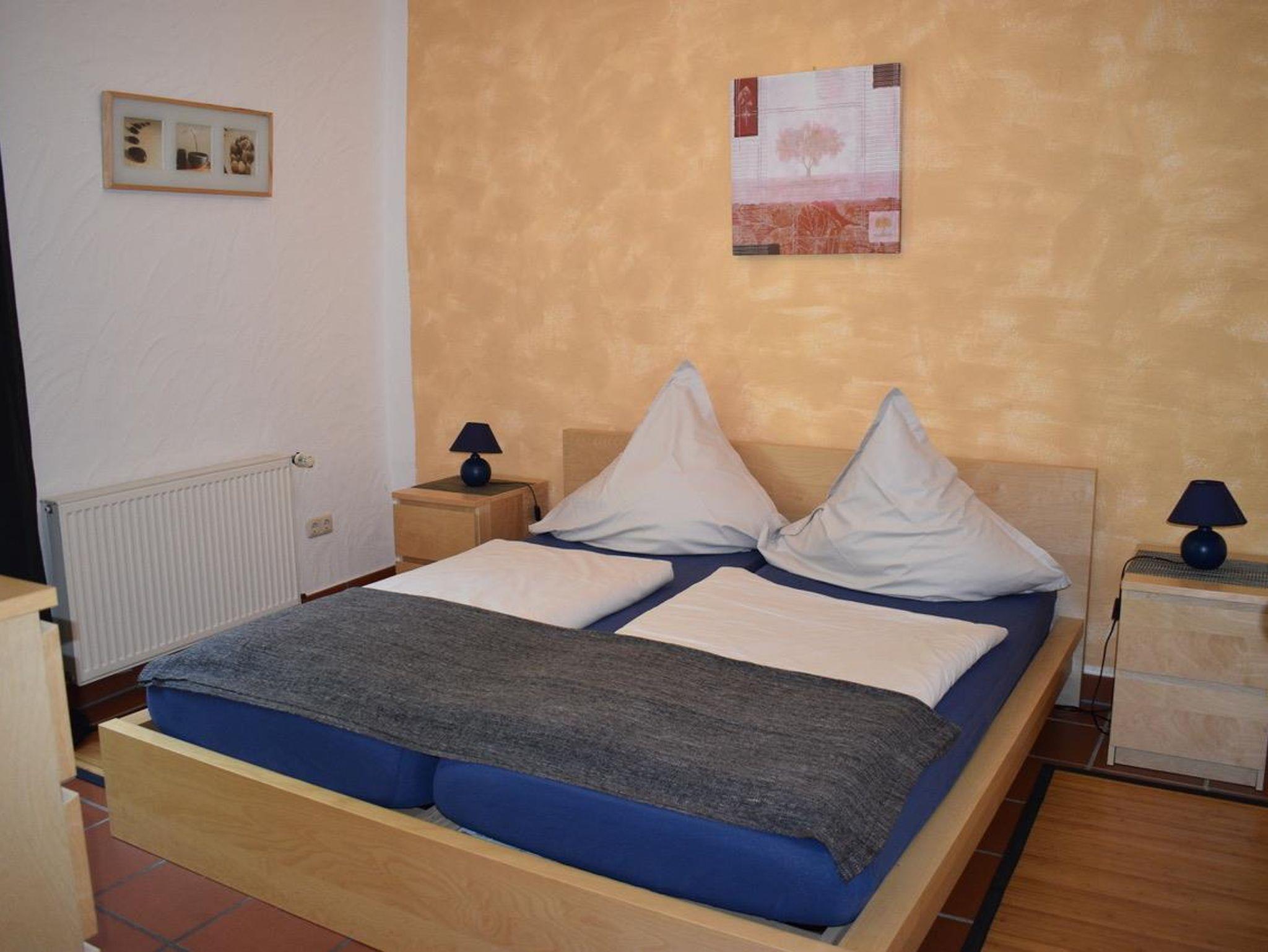 Sehr schöne Ferienwohnung für 2 - 4 Personen ist ca. 60 qm groß. Sie verfügt über einen separaten Eingang, Terracottaboden, zwei separate Doppelschlafzimmer, Wohnraum mit kleiner Küchenzeile (Kaffeemaschine, Toaster, Wasserkocher, Eierkocher), gemütliche Sitzgruppe und Sofaecke, Sat-TV und HIfi-Anlage.Bad mit DU/WC/Kosmetikspiegel und Fön, Terrasse mit herrlichem Blick in die Natur und Balkon zum Hofgarten.